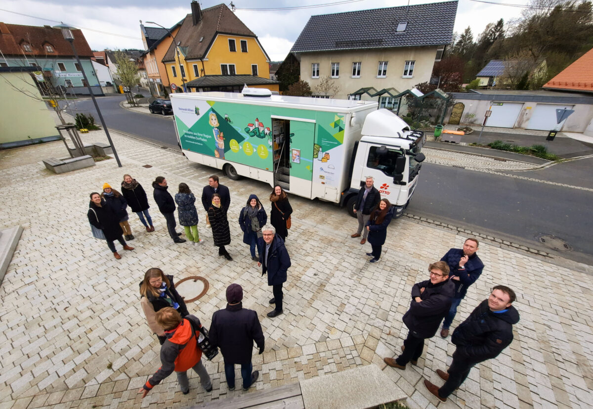 Bei einer kleinen Exkursion besuchte die Gruppe den Waldecker Schlossberg, der für die touristische Vermarktung der Region eine hohe Bedeutung habe und deshalb dort auch mehrere Projekte mit dem Regionalbudget gefördert worden seien. Martin Schmid, Umsetzungsbegleiter der Steinwald-Allianz, führte die Gruppe auch zu einem Halt des Mobilen Dorfladens in Ebnath, bei der sie sich ein Bild vom Verkaufsgeschehen und dem Warenangebot machen konnte.