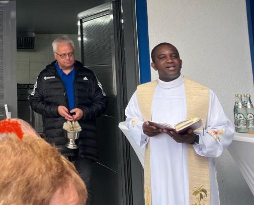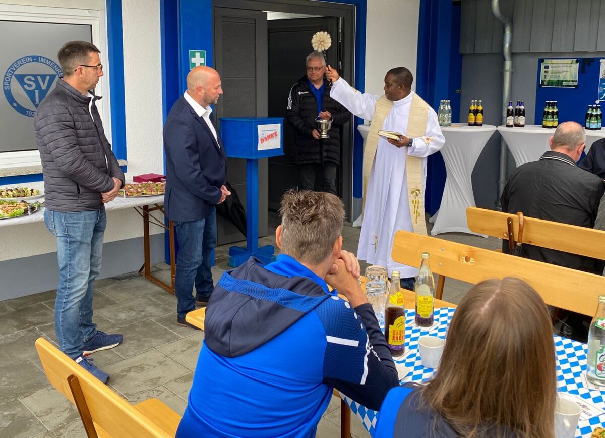 Für einen der charmantesten Momente sorgte die kirchliche Segnung der Anlage durch Pfarrvikar Dr. Linus zusammen mit seinem Ministranten, der im Anschluss sich viel Zeit zu Gesprächen mit den Anwesenden nahm. Auch am Nachmittag war der Begegnungsplatz gut besucht, wobei vor allem auch viele langjährige und verdiente SVI-Mitglieder bei Kaffee und Kuchen vor Ort Platz nahmen und sich die neuen Räumlichkeiten und Funktionsweisen bei einer Führung erklären ließen. Bereits jetzt zeigt sich zudem die Strahlkraft des Projekts. Der Obst- und Gartenbauverein hat das Zwiebelfest gebucht und der benachbarte Schützenverein will dort sein Gartenfest abhalten. Der “Begegnungsplatz der Vereine” hat sich somit gleich zu Beginn bei der Einweihung als lebendiger Treffpunkt bewährt.