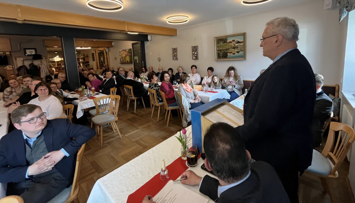 Zum dritten Mal stand der Mittelfranke aus Erlangen am Rednerpult des traditionsreichen Frühschoppens. Herrmann stellte das gute Verhältnis der bayerischen Staatsregierung zu der US-Armee in Bayern und die Bedeutung des Truppenübungsplatzes Grafenwöhr für die Verteidigungsbereitschaft der Nato und Europas heraus. „Wir werden auch mit diesen US-Präsidenten zurechtkommen müssen“ ging der Redner auf den Paradigmenwechsel in der US-Politik ein. Besondere Herausforderungen seien nun die Sicherheit und Zusammenarbeit in Europa. Herrmann stellte die Abschreckung durch Verteidigungsfähigkeit in den Vergleich zur inneren Sicherheit durch Stärke und betonte: „Wir werden alles dafür tun einen Krieg zu verhindern“. Die Grundgesetzänderung, die Koalitionsverhandlungen, die innere Sicherheit sowie die Asyl- und Integrationspolitik griff Herrmann als weitere Themen auf. Es gehe um eine grundlegende Wende in der Integrationspolitik zu erreichen. Dazu müssen Neuzugänge reduziert werden und die Abschiebung von Straftätern erfolgen. Bayern gelte als das sicherste Bundesland und das solle es auch bleiben. Auch die Wirtschaft laufe in Bayern besser als in anderen Bundesländern. „Wir haben uns einen hohen Lebensstandard erarbeiten und müssen uns anstrengen, diesen Standard zu halten“, so Herrmann. Das von Jürgen Hofmann eingangs angesprochene Bayerische Zentrum für besondere Einsatzlagen (BayZBE) in Windischeschenbach, stellte Herrmann als bundesweit einmalig heraus und bezeichnete es auch als einen Beitrag zur Strukturpolitik.
