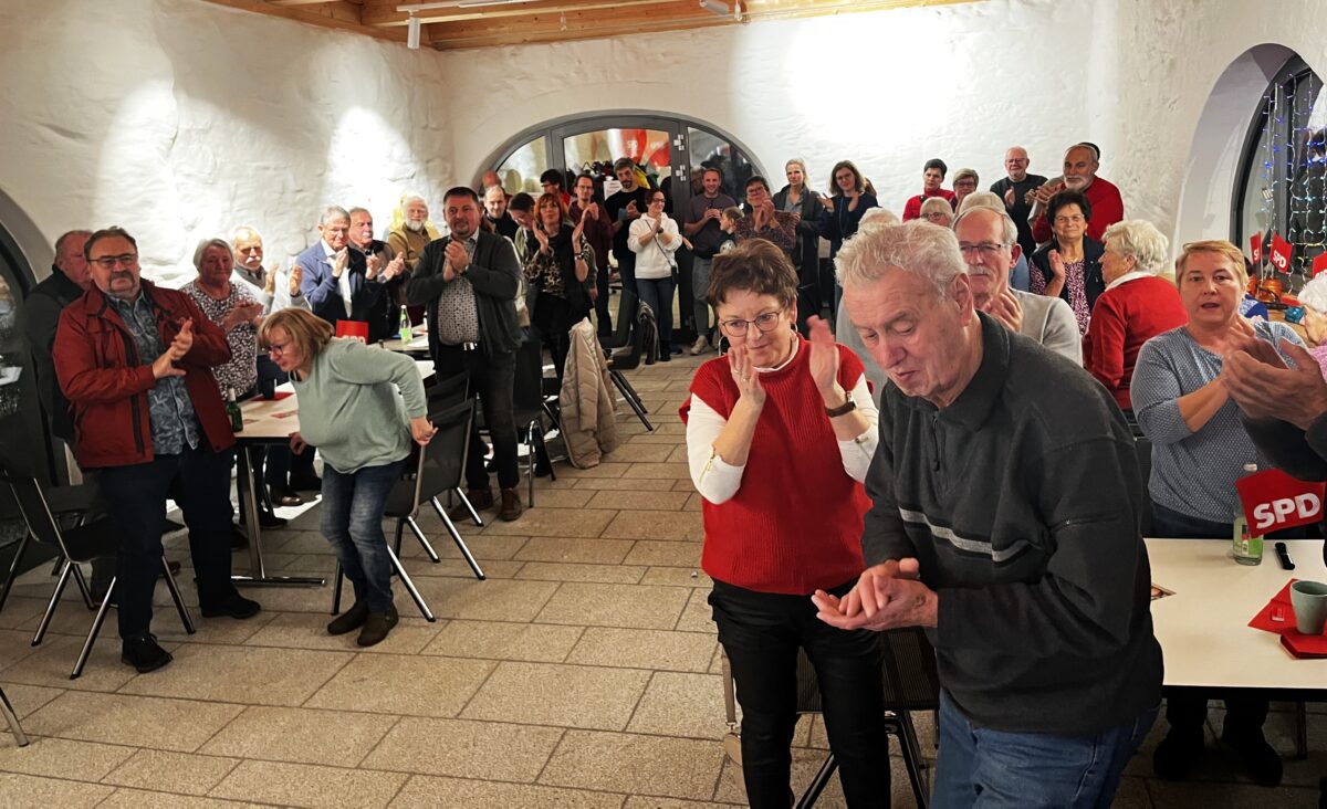 In seinem Resümee zur Bundespolitik zeigte sich Simon Grajer zunächst froh über das Ampel-Aus: “Die würdelosen und ständigen Querschüsse der Lindner-FDP haben endlich ein Ende, sagte der USA-Vorsitzende unter dem lautstarken Beifall der Gäste. Dennoch habe die Bundesregierung viel geschafft. Sie habe die Energiepreise in den Griff bekommen, den Mindestlohn angehoben, der Bundestag werde verkleinert, die Renten seien gestiegen, Hartz 4 wurde abgeschafft und das Bürgergeld (“das ist wesentlich besser, als es immer dargestellt wird”) eingeführt. “All das unter der Führung eines sozialdemokratischen Kanzlers Olaf Scholz.” Jetzt müsse man alle Energie in den Wahlkampf investieren. “Lasst uns alle weitermachen und zu einem guten Ende führen”, rief Grajer den Genossinnen und Genossen zu.