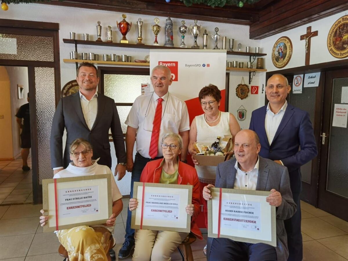 Zum Ehren-Kreisvorsitzenden wurde der langjährige Kreischef Rainer Fischer ernannt. Uli Roth zählte eine ellenlange Liste von Verdiensten, Funktionen und Aktivitäten des ob seiner Fachkenntnisse auch überparteilich anerkannten Waldsasseners auf. “Du hast dir diese Ehre verdient, auch wenn ich weiß, dass du so etwas eigentlich nicht magst”, sagte Roth lachend. Neue Ehrenmitglieder sind Hannelore Bienlein-Holl aus Fuchsmühl und Sybille Bayer aus Kulmain. Beide Frauen hätten den Kreisverband und den Unterbezirk lange Jahre geprägt. Bienlein-Holl war selbst Kreisvorsitzende und Landespartei-Geschäftsführerin, Bayer stand viele Jahre in vorderster Front bei der AsF.