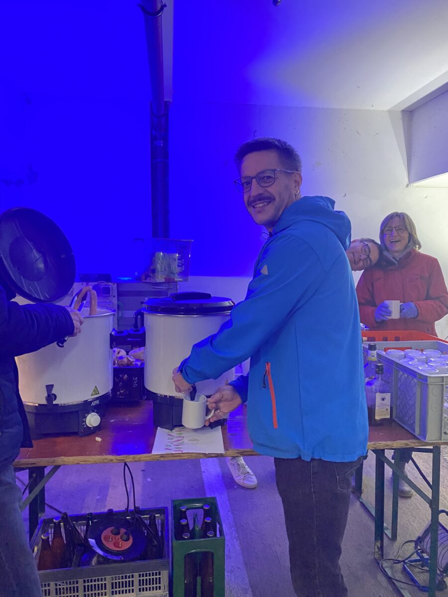 Zur Aufwärmung bot die SPD heißen Apfelsaft und warme Käsegreiner an, die besonders gut ankamen. Der Apfelsaft, gesammelt, gepresst und verfeinert durch Torsten Bär persönlich, war ein Highlight. Sebastian Giering, der erste Vorsitzende, betonte, dass vor allem der echte Neustädter Apfelsaft mit einem Schuss Rum oder Obstler sehr gefragt war.