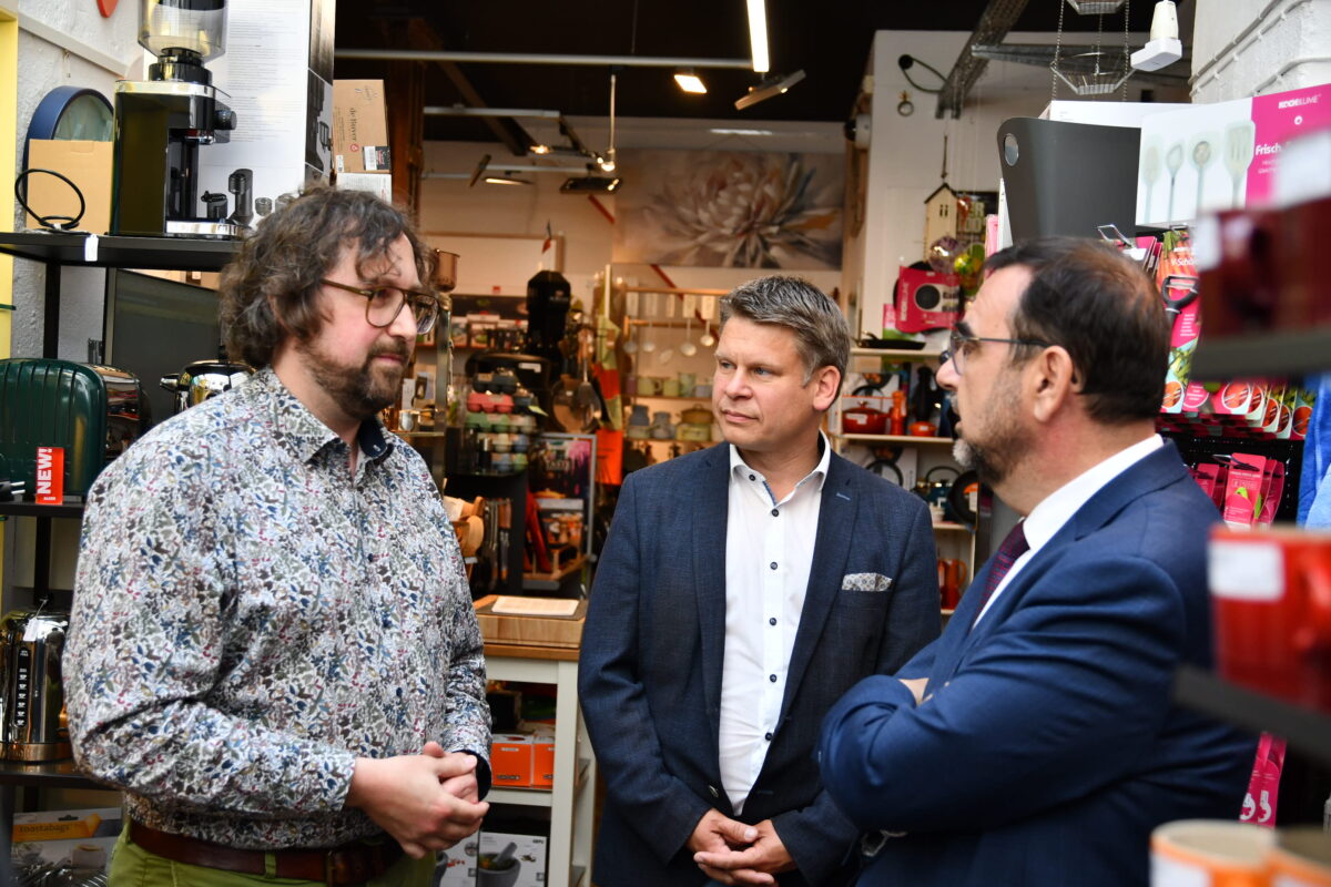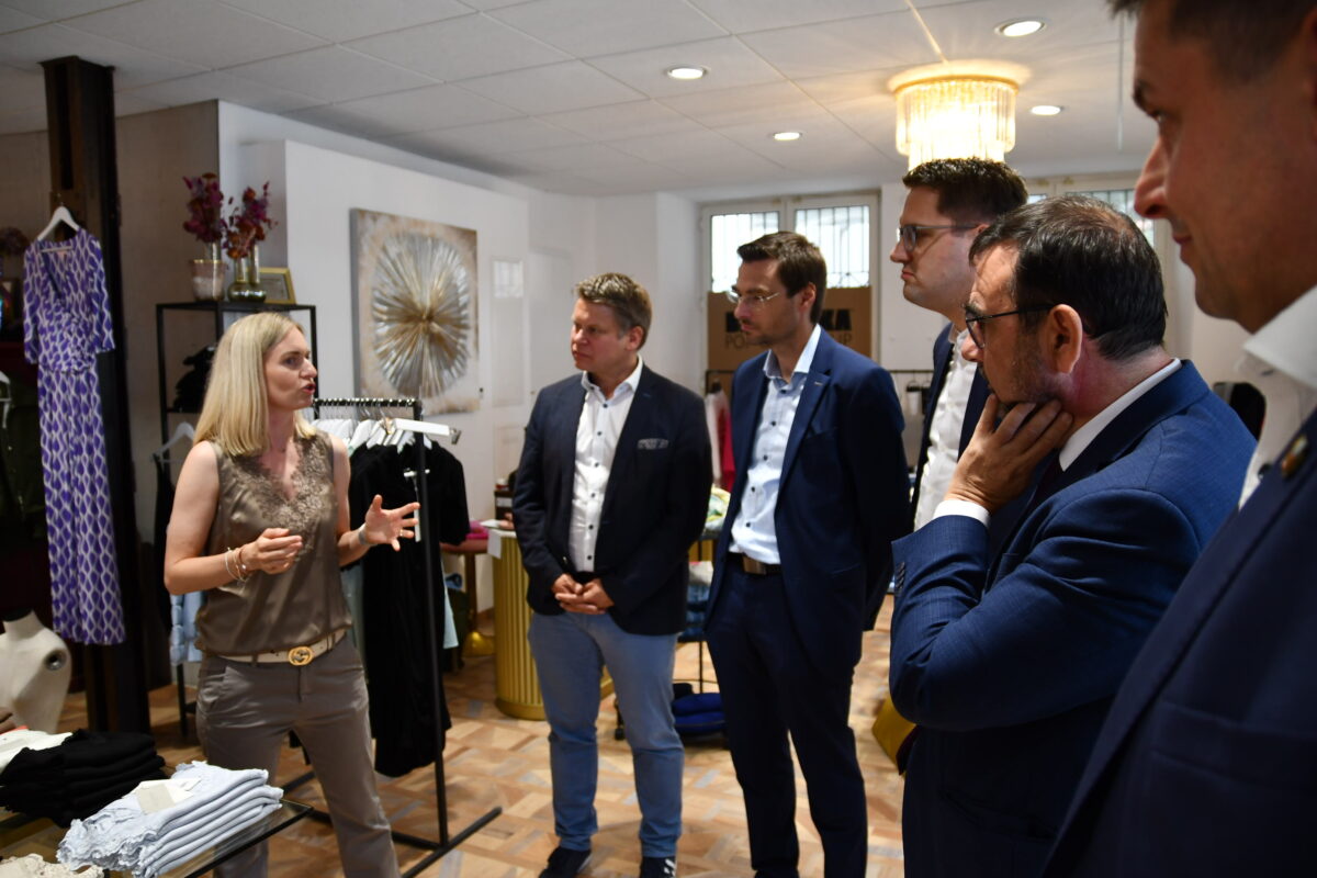 Klaus Holetschek nahm sich Zeit, mit dem Inhaber Tobias Sona über Öffnungszeiten und die Probleme der Händler zu sprechen. Ebenso besuchte die Delegation Alexandra Kerscher von Frau Alex. Holetschek interessierte sich besonders, ob eine Ausweitung der Öffnungszeiten und mehr offene Sonntage oder Verlängerungen in die Abendstunden sinnvoll seien. Hier nahm er von den verschiedenen Händlern, wie Ursula Aulinger im BANU Concept Store und Stefan Gruhle von Uhren und Schmuck Gruhle viele Anregungen mit. „Sinnvoll wäre es, eine Öffnung zu beschließen, die die Städte vor Ort als Kann- und nicht Muss-Regelung festlegen können“, so Holetschek.