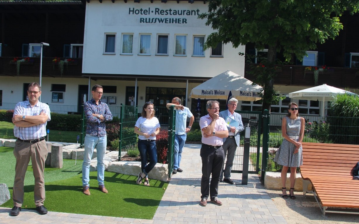 In einer Vorstellungsrunde erläuterten die LAG-Manager den neuen Mitarbeitern, welche Projekte sie gerade bearbeiten, welche Herausforderungen sie gegenüberstehen, aber auch welche Erfolge LEADER in ihrer Region zeigt. Um das Ganze etwas aufzulockern und den Austausch anzuregen, stellte Eschenbachs Bürgermeister Marcus Gradl das Leader-Projekt „Adventuregolf am Rußweiher“ vor und lud die Teilnehmer zu einer Runde Minigolf ein.