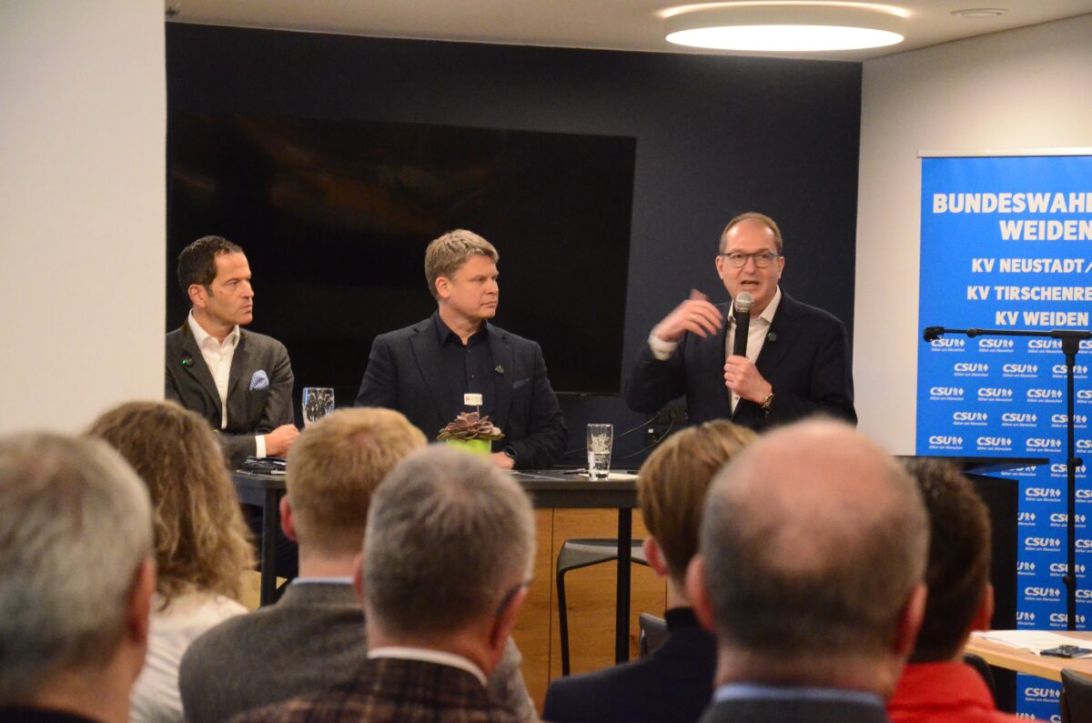 Moderiert wurde der Abend von CSU-Fraktionschef Benjamin Zeitler. Abschließend konnten sich Zuhörer zu Wort melden. Als Geschenk bekam Dobrindt einen Eishockeyschläger, einen Blue-Devils-Puck und einen Fan-Schal des EV Weiden.