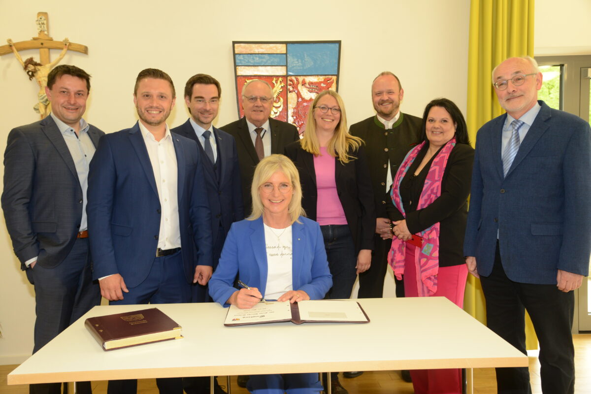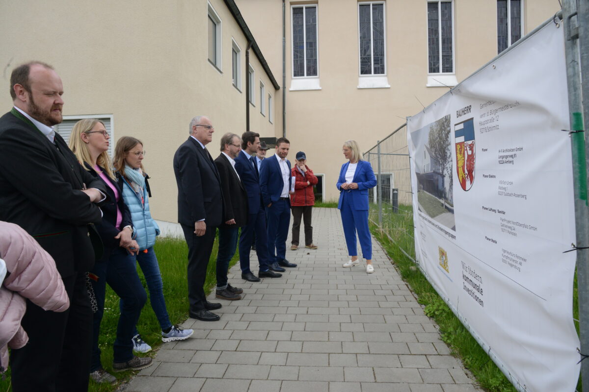 In kleinen Gesprächsrunden wurden aktuelle Themen diskutiert. Höhepunkt war dann der Eintrag ins Goldene Buch der Gemeinde Schirmitz. Ernst Lenk zeigte der Ministerin dann die Baustelle zur Erweiterung des Kinderhauses. Kurz und knapp beschrieb das Gemeindeoberhaupt den Weg bis zur kompletten Übernahme der Verantwortung der Gemeinde für Kinderhaus und Kindertagesstätte.