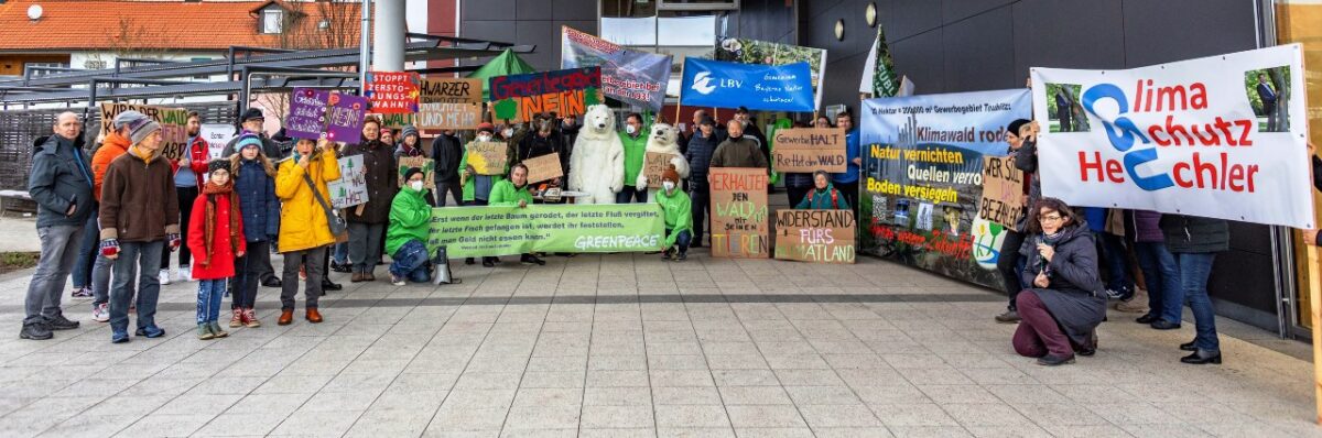 Welche Bedeutung der Teublitzer Klimaschutzwald für Umweltschützer in ganz Deutschland hat, erläutert Günther Sparrer von Greenpeace Weiden: „Vertreter von Greenpeace aus Regensburg, Weiden und München sind heute gekommen“, sagt der Koordinator der Weidener Ortsgruppe, „sogar Greenpeace Hamburg unterstützt diesen Kampf.“ Der Teublitzer Klimaschutzwald sei noch wichtiger als der Wald, der für das Gewerbegebiet in Weiden West IV abgeholzt werden sollte.