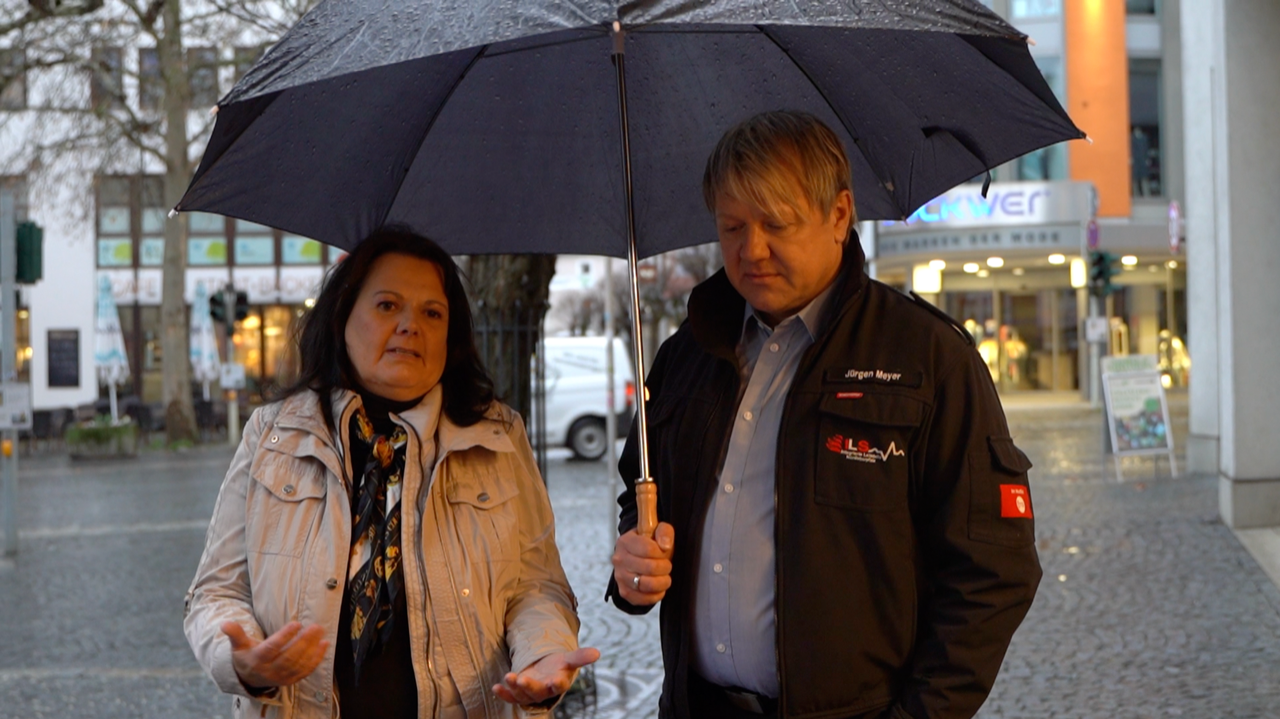 Als Fazit blieb: “Im Notfall ist alles besser als Nichtstun! Der Einsatz der Defibrillatoren ist nur in einem einzigen Fall schwierig: Wenn man mit Strom mitten in einer Wasserpfütze steht”, sagte die Ortsverbandsvorsitzende. Aber selbst im Dauerregen während der Veranstaltung war das ein lösbares Problem.