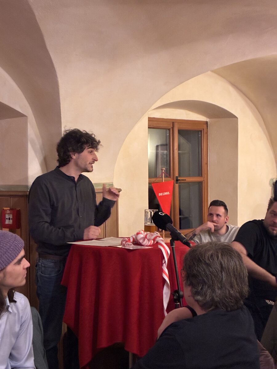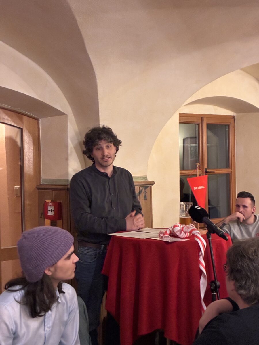Trotz einer zweistündigen Verspätung aufgrund massiver Probleme bei der Bundesbahn wurde der Hauptredner und Bundestagsabgeordnete Ates Gürpinar mit großem Beifall empfangen. In seiner Rede zog er eine selbstbewusste Bilanz zum Wachstum der Partei: