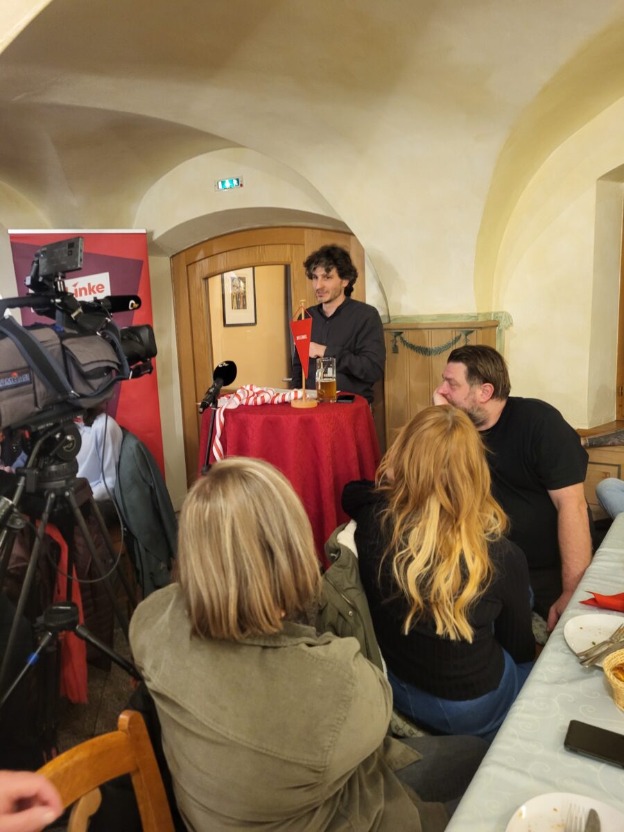 Premiere geglückt, Saal gesprengt: Zum ersten Politischen Aschermittwoch der Linken in Weiden platzte die Brau-Stube im „Bräuwirt“ aus allen Nähten. Da jeder Sitzplatz bis auf den letzten Platz besetzt war, mussten zahlreiche Interessierte die Veranstaltung im Stehen verfolgen. Unter der Leitung von Benedikt Zintl erlebte das Publikum eine Mischung aus scharfer politischer Analyse und bissiger Satire.