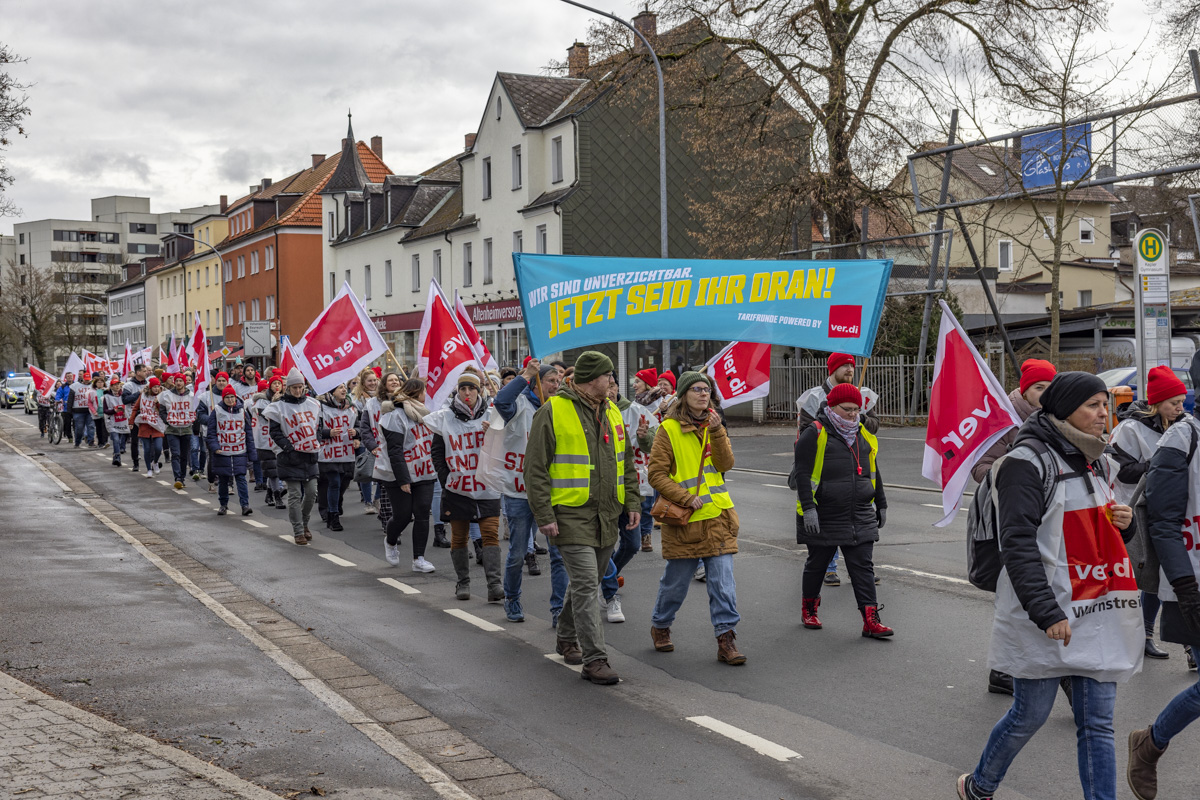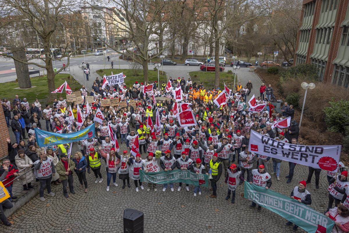 Als „Krass unsozial“ sieht die Vereinte Dienstleistungsgewerkschaft (ver.di) das neuste Angebot der Arbeitgeber von Bund und Kommunen an. Mit Blick auf den Fachkräftemangel, der Inflation und den daraus resultierenden gestiegenen Lebenshaltungskosten ist die Enttäuschung aber besonders bei den Arbeitnehmern groß. Mit ihrem heutigen Warnstreik haben sie ihren Arbeitgebern eindrucksvoll bewiesen, dass ohne sie die Räder stillstehen.
