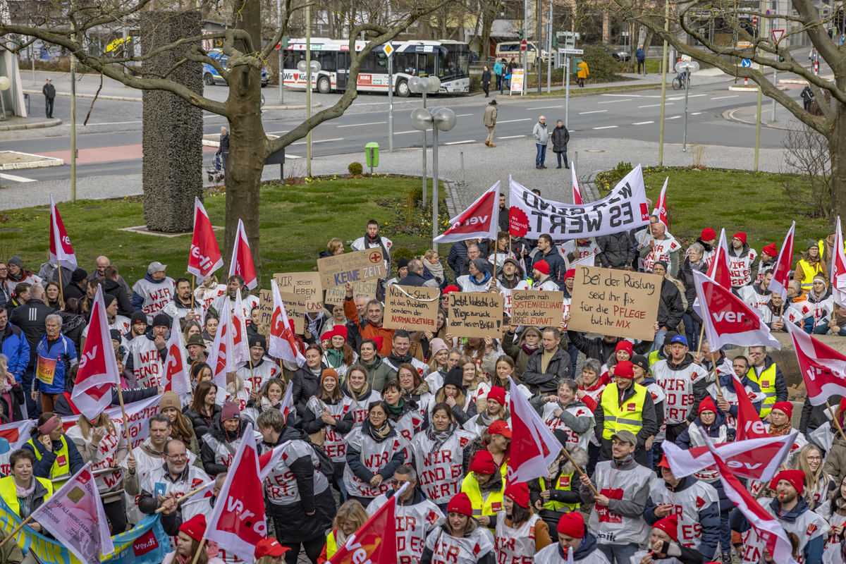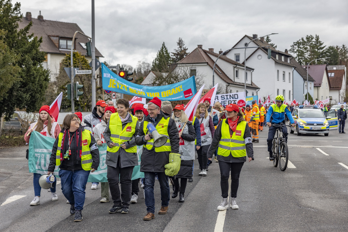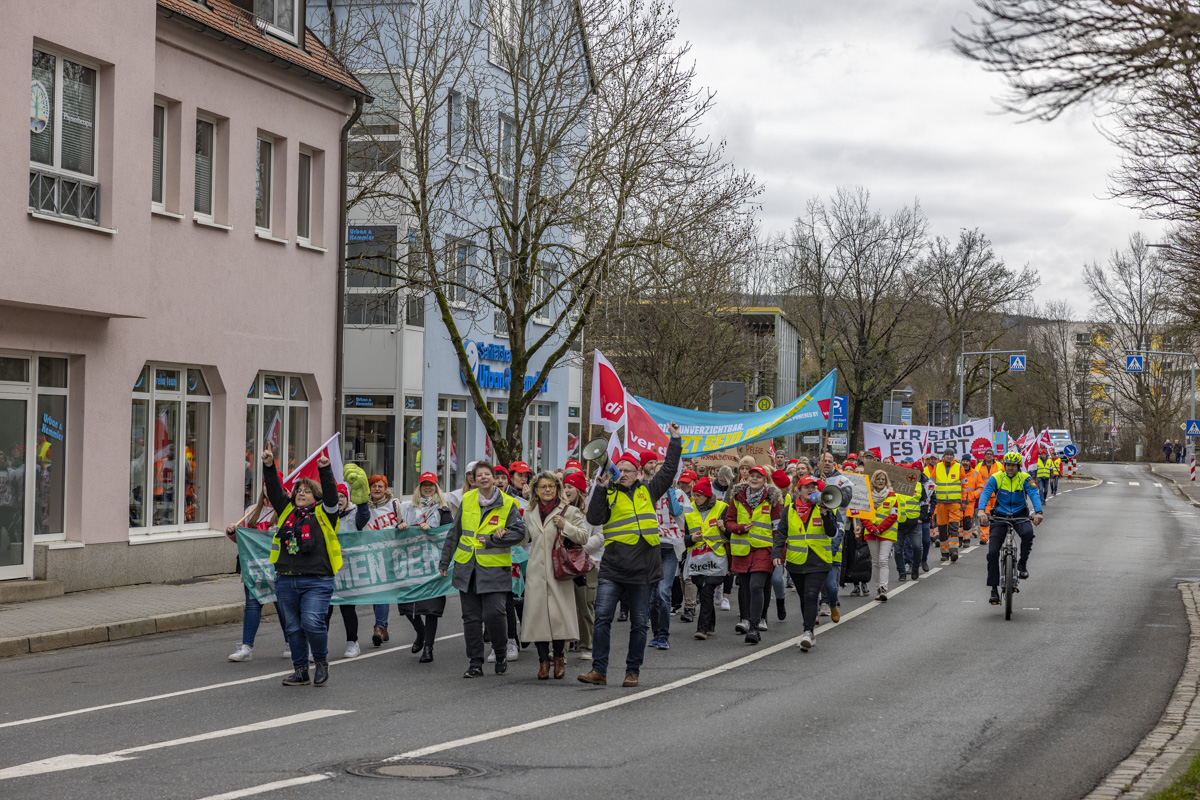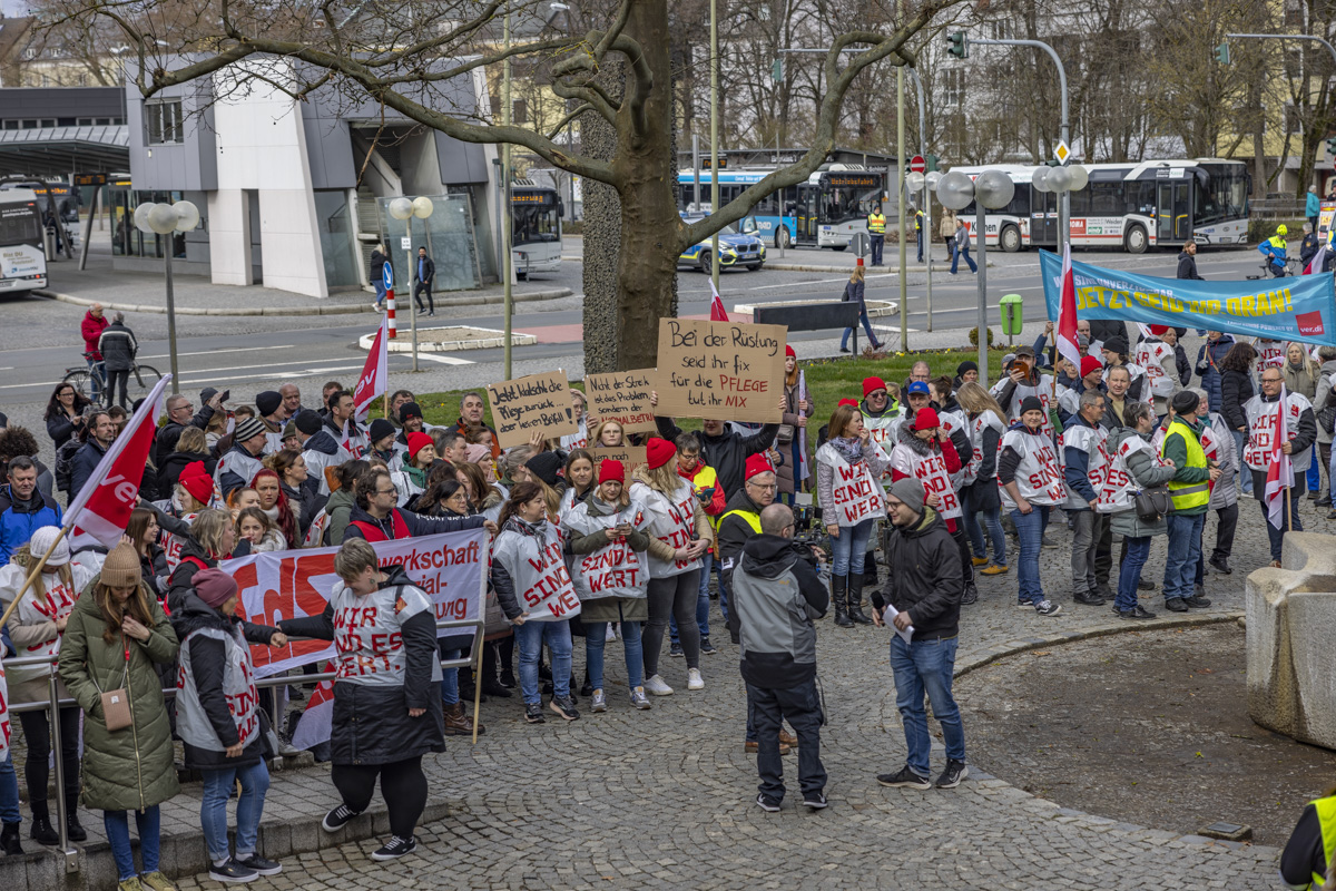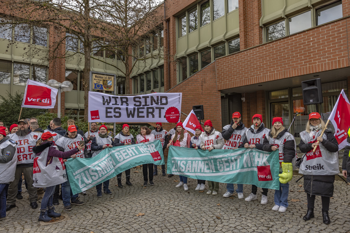 “Wer arbeitet, will auch leben und nicht nur überleben”, meinen die Teilnehmer des Demoszugs. Um ihren Forderungen Ausdruck zu verleihen, waren Beschäftigte von der Agentur für Arbeit, den Job-Centern, den Kliniken, aus der Pflege und von vielen Städten sowie Gemeinden nach Weiden kommen. Nicht nur die Bezahlung liegt den Beschäftigten am Herzen. Viele Mitarbeiter scheinen sich schlichtweg nicht genug wertgeschätzt zu fühlen. Sie wünschen sich von ihren Arbeitgebern den Respekt, den sie für ihre Arbeit verdienen.
