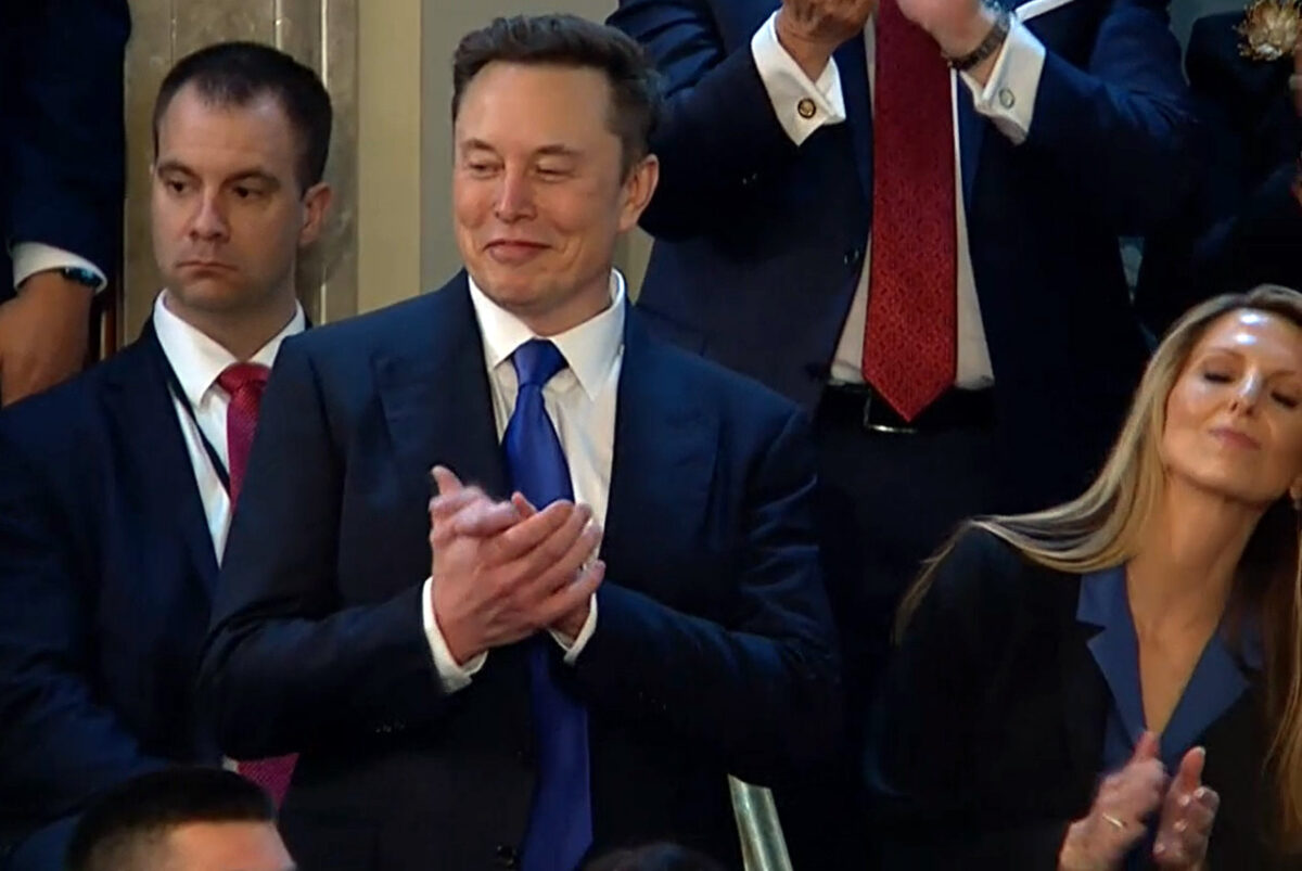 „Außerdem werden wir der Verschwendung von Steuergeldern ein Ende bereiten“, verspricht Trump, der auf Nachfragen bei Pressekonferenzen bislang keinen einzigen Fall dokumentieren konnte. Hier aber unterbricht ihn keiner bei der Hymne auf Doge – das Department of Government Efficiency – „geführt von Elon Musk, der heute ebenfalls hiersitzt. Vielen Dank, Elon! Er arbeitet wirklich hart, er hat das gar nicht nötig.“ Standing ovations, Jubel, Gekreische, „Elon, Elon, Elon…“ – Demokraten vergraben ihr Gesicht in ihren Händen.