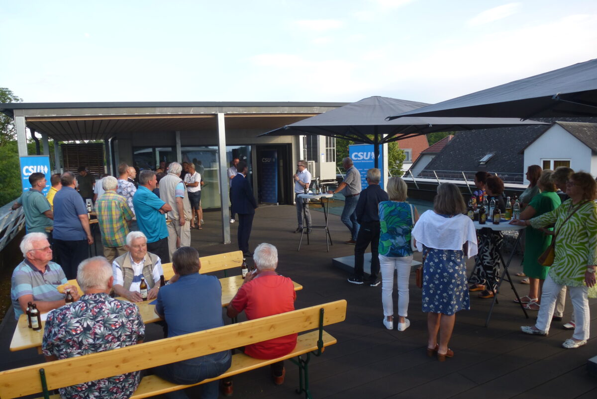 MdL Stephan Oetzinger richtete den Dank an die Ehrenamtlichen, die das Vereinsleben erhielten und damit einen wichtigen Baustein zur Lebensqualität in der Gemeinde beitrügen. „Wir haben eine einmalige Struktur in Bayern. 47 Prozent der Menschen sind ehrenamtlich tätig“ unterstrich Oetzinger. Die Vereinspauschale sei deshalb zum dritten Mal verdoppelt worden. Der Abgeordnete verwies ferner auf die deutlichen Steigerungen bei der Förderung von Feuerwehrhäusern. Bei den Fahrzeugen seien es 30 Prozent mehr. Bei Bratwürsten vom Grill und Getränken, die JU-Chef Luis Heibl und FU-Vorsitzende Nicole Presche kredenzten, gab es am lauen Sommerabend einen regen Austausch.