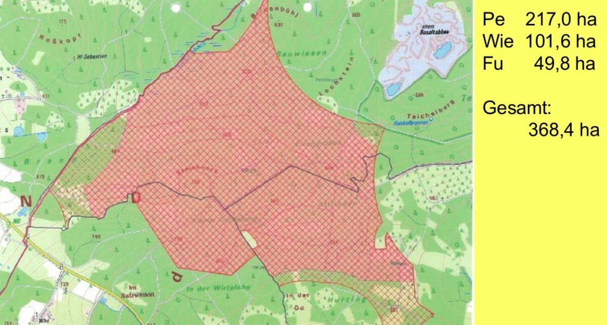 Im ersten Windkraftentwurf des Planungsverbands von 2024 waren noch 195 Vorranggebiete auf über 15.000 Hektar ausgewiesen – circa 2,9 Prozent der Regionsfläche. Nach Berücksichtigung unter anderem von Natur- und Umweltschutz, Denkmalschutz, Bundeswehr, Wetter- und Erdbebenmessstationen sowie fast 500 Stellungnahmen meist von Windkraftgegnern reduzierte sich laut Melanie Glötzl, der Regionalplanerin bei der Bezirksregierung, die Fläche enorm: Es sind jetzt „nur“ noch 121 Vorranggebiete auf circa 8.000 Hektar, was 1,6 Prozent der Fläche der nördlichen Oberpfalz bedeutet.