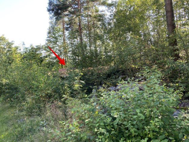 Das Steinhauerhaus (Pfeil) finden nur Einheimische; es ist vollkommen zugewachsen. Foto: Eichl