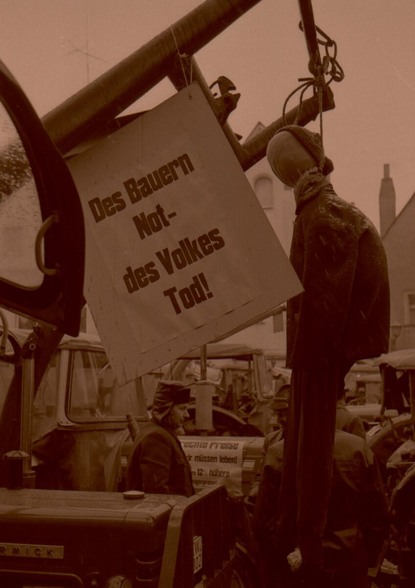 Es gäbe in der Bundesrepublik keinen Berufsstand, der ähnlich ins Hintertreffen geraten sei wie der des Landwirts. “Einst hochangesehen und sogar als Vertreter des Nährstandes deklariert, kämpft der Bauer um seine nackte Existenz.”