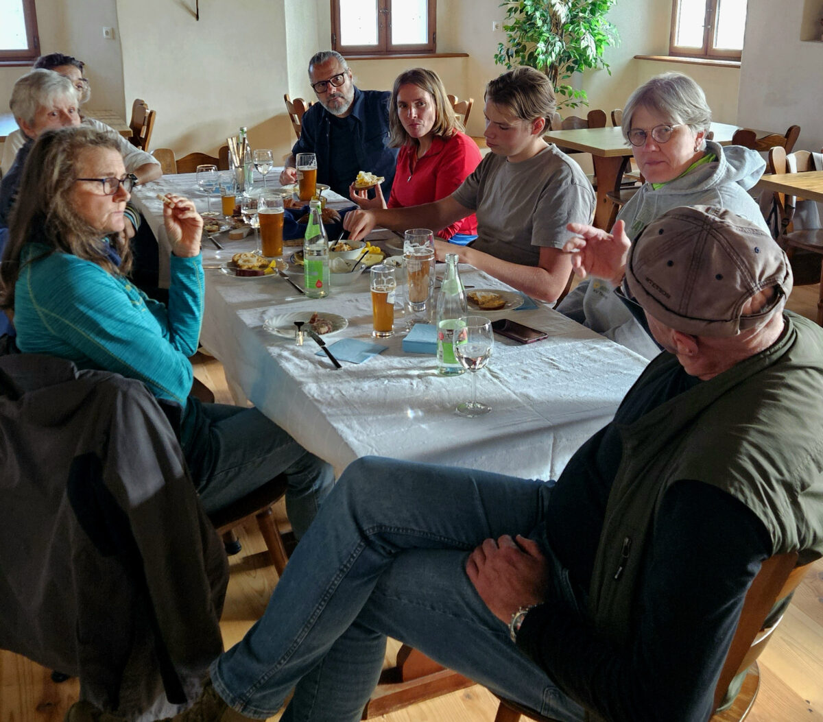 Nach fünf Stunden Fußmarsch erreichte die Gruppe die Hammermühle bei Falkenberg, ein unter Denkmalschutz stehendes Anwesen, das Hubert Wild mit seiner Frau liebevoll saniert und dabei so viel wie möglich der ursprünglichen Bausubstanz zu erhalten versucht.