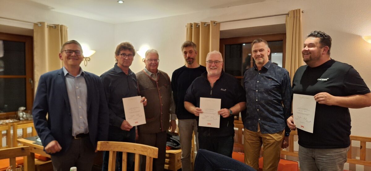 Ein Höhepunkt des Abends war die Ehrung langjähriger Mitglieder für ihre Treue und ihr Engagement für den SPD-Ortsverein. Fritz Betzl wurde für 50 Jahre, Karl-Heinz Betzl für 25 Jahre, und Magdalena Wagner sowie Matthias Haberberger für 10 Jahre Mitgliedschaft geehrt. Ott dankte den Geehrten mit den Worten für ihren Einsatz für sozialdemokratische Werte.