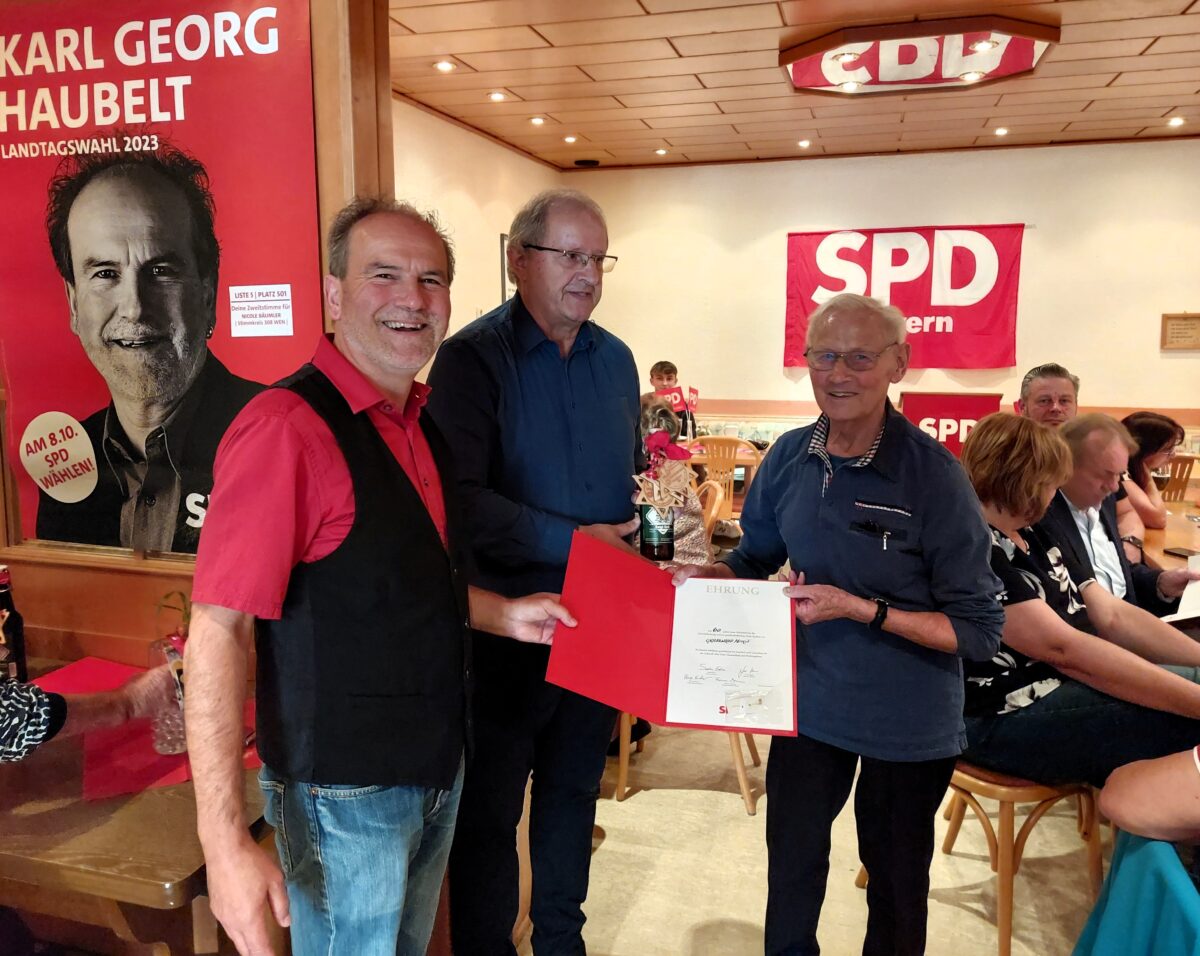 Begrüßen konnte er dazu die Fraktionsmitglieder im Stadtrat Werner Sauer, Renate Nastvogel und Frank Brünnig. Ein besonderer Gruß galt Karl Georg Haubelt, dem Direktkandidaten im Stimmkreis Tirschenreuth. Sieben Mitglieder konnten in diesem Jahr ausgezeichnet werden, allen voran Horst Gradewald. Seit 1963 ist er in der SPD aktiv und seine vielfältigen Aktivitäten waren besonders bei Wahlen herausragend. Ob im Organisationsteam bei Wahlen, im Vorstandsgremium oder als Helfer bei Festen und Veranstaltungen der Partei – er war einer der guten Geister.