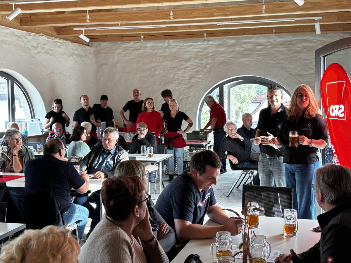 Der Abend sollte aber auch eine faustdicke und für viele freudige Überraschung parat haben, doch dazu später mehr. Ortsvereinsvorsitzende Petra Thomas begrüßte die vielen Gäste und freute sich über die große Resonanz. Unterdessen versorgten die fleißigen Helferinnen und Helfer hinter der Theke, in der Küche und im Service die durstigen und hungrigen Besucher bis in den späten Abend mit süffigem Zoigl und diversen Leckereien wie Leberkäse, Rettich, Brotzeitplatten sowie Wurst- und Käsespezialitäten.