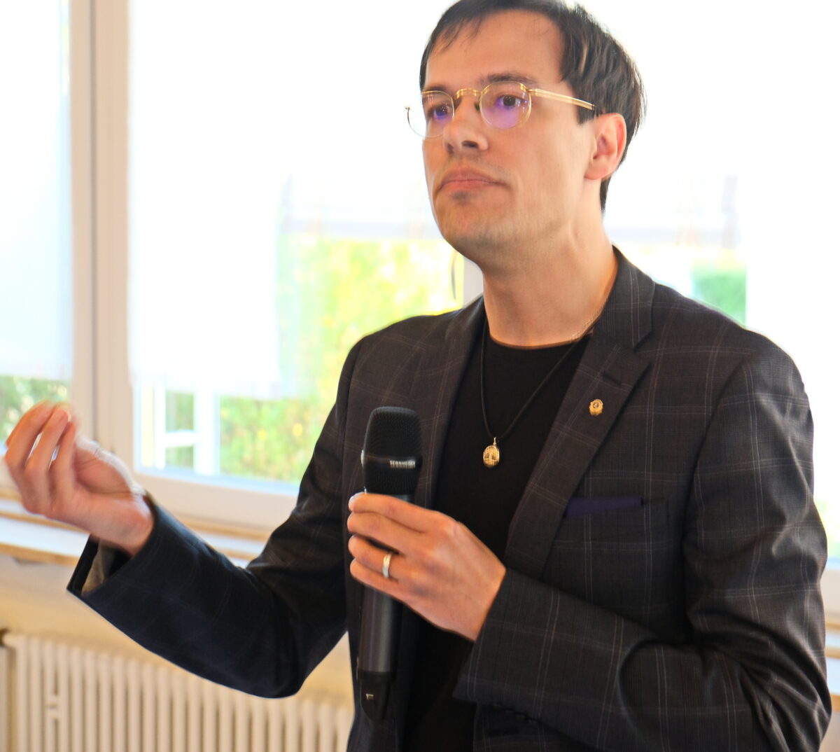 In Anwesenheit der „Speinshart-Macher“ – Landtags-Vizepräsident Tobias Reiß, Abt em. Hermann Josef Kugler und Prof. Dr. Günter Lengering – beleuchtete Dr. Adrian Roßner den Zwischenstand für die Planungen eines „baulich wie inhaltlich Speinsharter Jahrhundert-Projekts“, bei dem auch „dem Volke“ eine bemerkenswerte Rolle zugedacht sei. Roßner steht dem Zentrum seit November 2024 als Geschäftsführer vor.