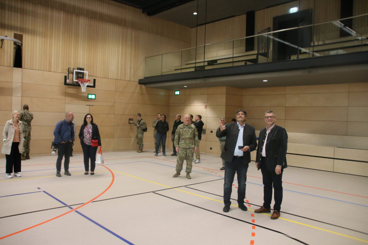Auf der anschließenden Besichtigung sah sich Herrmann mit Bürgermeister und der US-Führung dann das neue Training Support Center, den Altweiher Ursprung, den bekannten Schwarzen Berg, das Installation Training Area Management und die Schießbahn 118 an. Zum Abschluss des Besuches durfte natürlich eine Besichtigung des neuen elf Millionen Euro teuren Schmuckstücks von Grafenwöhr, die generalsanierte Stadthalle, nicht fehlen.