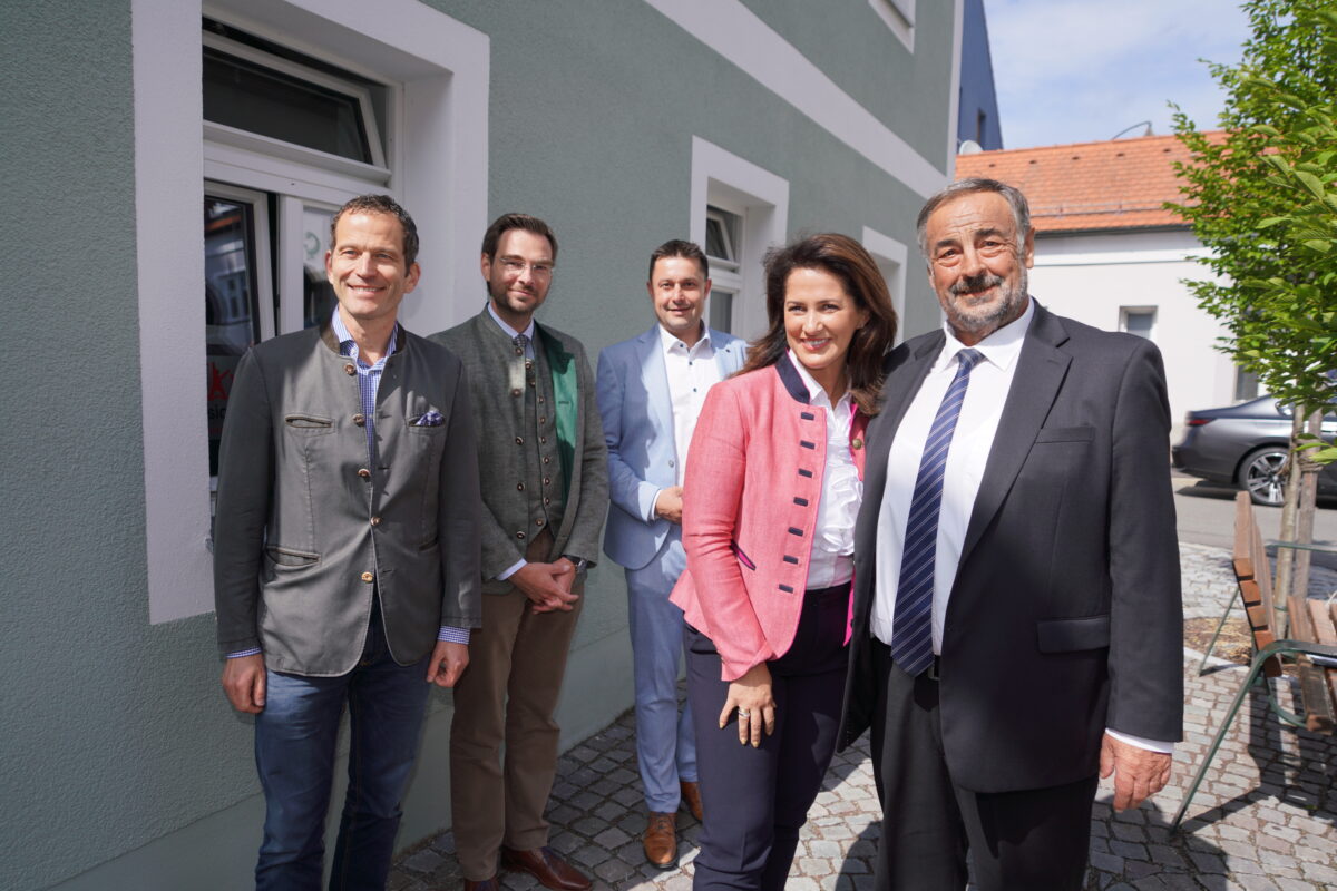 Anschließend brachte Kaniber am Markplatz die Tafel des europäischen Dorferneuerungspreises 2022 Waldthurn in Silber – Brücken bauen – am Haus der Physiozeitpraxis von Thomas Bauer an. Waldthurn hatte hierbei Bayern für diesen Wettbewerb erfolgreich vertreten.