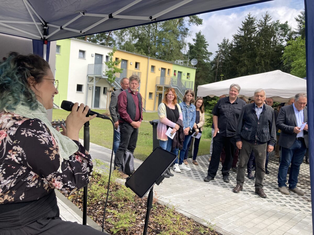 Mit Sozialdezernent Wolfgang Hohlmeier, Baudezernent Alkmar Zenger und Evi Fink (Abteilungsleiterin besonderer Sozialdienst) durchschnitt er das Band zur neuen Unterkunft. Lehrer der Franz-Grothe-Musikschule sorgten für den musikalischen Rahmen, unter anderem mit “Sing a little Prayer”. Das Café Grenzenlos des Maria-Seltmann-Hauses übernahm das Catering der Feier.