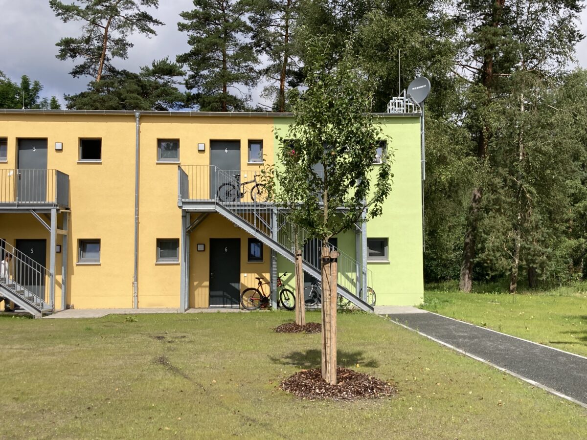 Die Gäste der Eröffnungsfeier konnten sich am Mittwoch ein Bild von den Zimmern machen. Jaeger Modulbau aus Weiden hat innerhalb kürzester Zeit zwei neue zweigeschossige Unterkünfte in Stahlmodulbauweise errichtet. 21 Appartements bieten Platz für 44 Bewohner, eines davon ist eine Familienwohnung. Für ein Zimmer hat die Polizei den Schlüssel, falls über Nacht ein Platz gebraucht wird. Die Inneneinrichtung ist schlicht und robust: Bett, Tisch und Stühle, Spind.