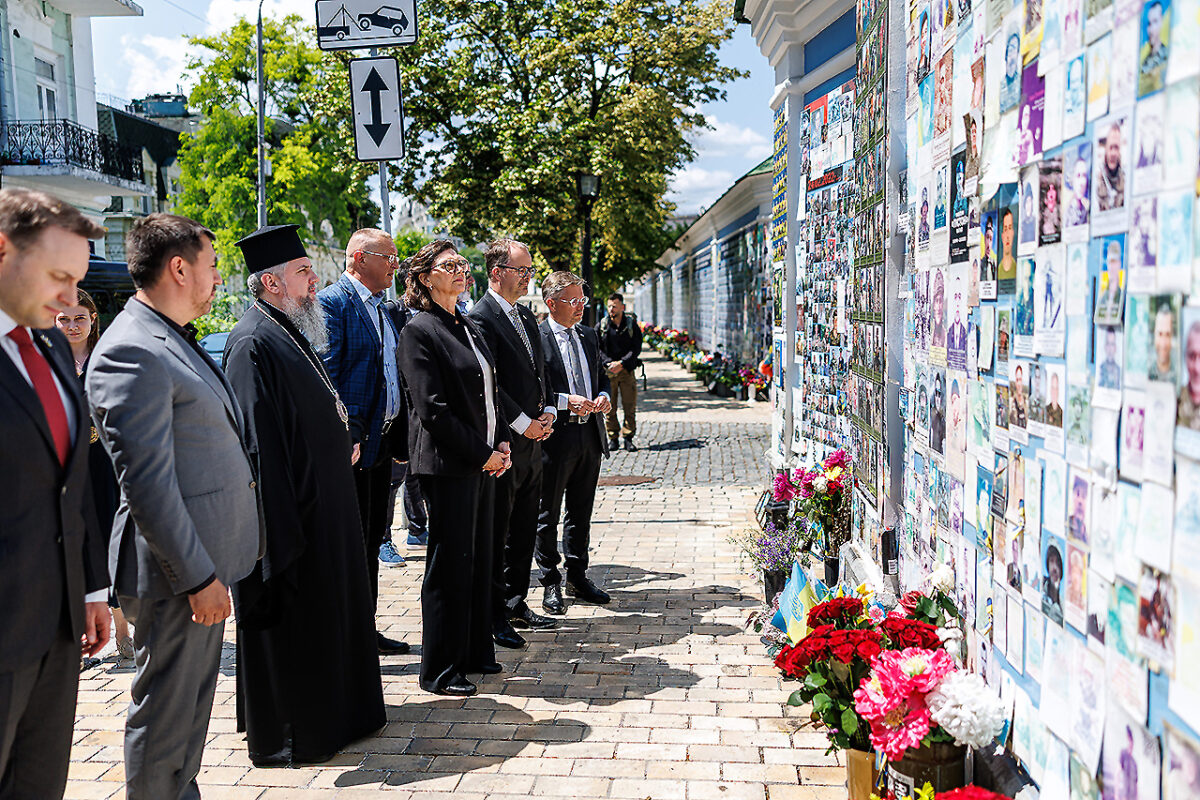 Nur wenige Kilometer von Kiew entfernt liegt Butscha. Der Ort, dessen Name zum Symbol für russische Kriegsverbrechen wurde. Über 500 Tote wurden hier nach dem Abzug der Invasoren entdeckt – viele von ihnen gefoltert, manche mit gefesselten Händen exekutiert. Die Delegation steht still, als sie gemeinsam mit Bürgermeister Anatolii Fedoruk den Opfern gedenkt.