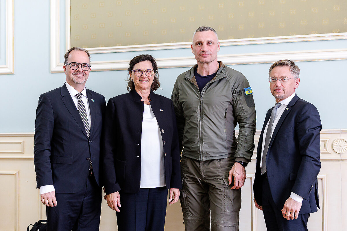 Wenn Vitali Klitschko spricht, wird der Mythos des Boxers zum Manifest des Bürgermeisters: „Wir erleben jede Nacht Terror durch Drohnen- und Raketenangriffe. Aber wir geben nicht auf – weil wir hier zu Hause sind!“ Der Bürgermeister von Münchens Partnerstadt Kiew empfängt die Gäste aus Bayern mit Dankbarkeit und Deutlichkeit: „Ohne Euch könnten wir nicht durchhalten.“