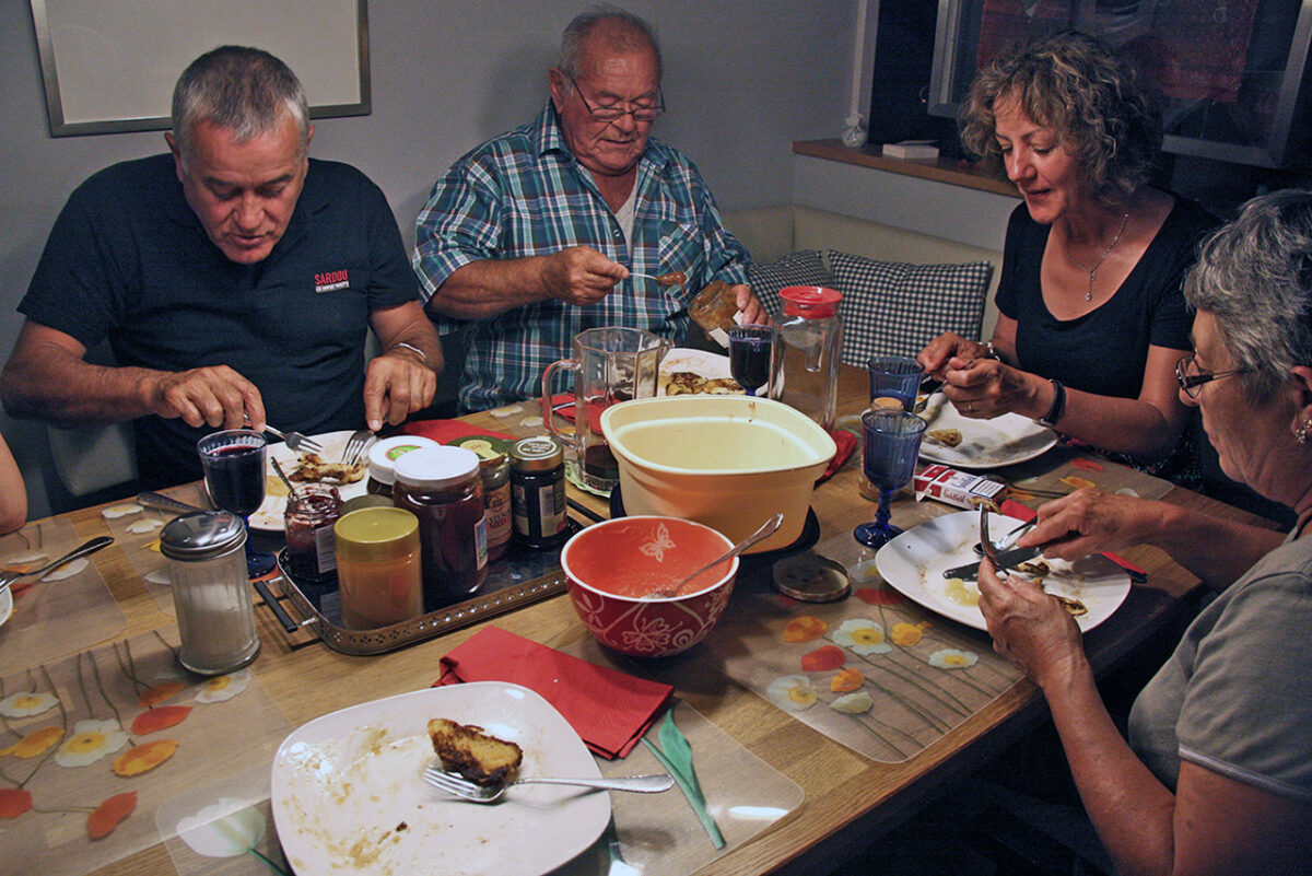 Zeit, für einen Chat mit meinen besten französischen Freunden, mit denen ich seit Studenten-Zeiten losen, aber beständigen Kontakt halte. Nicole und René Miguet sowie Carmen und Michel Develey haben mich vor rund 40 Jahren bei einer Fahrradpanne im Burgund samt Rad und Gepäck aufgesammelt, mich eine Nacht mit den deliziösesten – festen wie flüssigen – Delikatessen gemästet. Seitdem besuchen wir uns in großen Abständen gegenseitig.