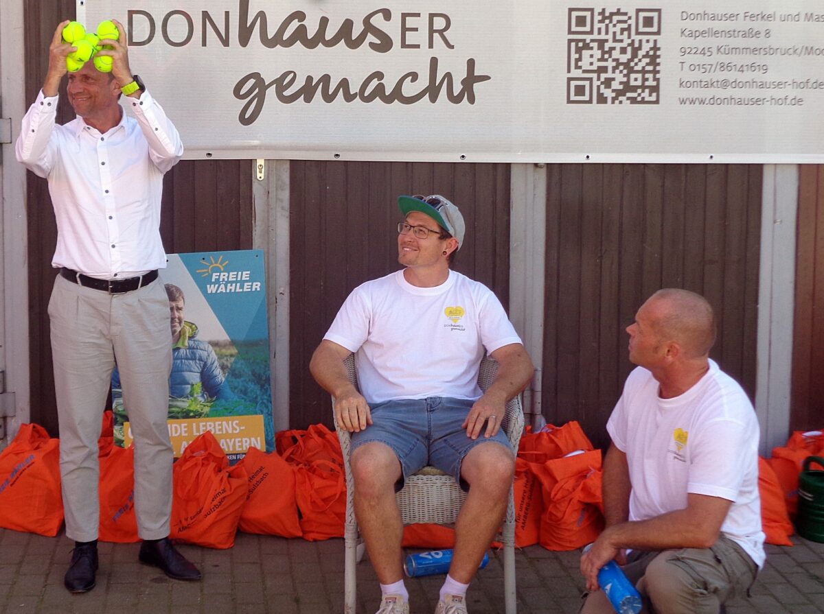 Etwas Nervosität war den Verantwortlichen der Freien Wähler Amberg-Sulzbach, Hans Martin Grötsch, Thomas Wagner, Bernhard Heinisch und Alexander Pömsl, durchaus anzumerken. Schließlich kam auf Ihre Einladung zu den Themen „Gesunde regionale Lebensmittel& Vermarktung“ sowie „Rote Gebiete“ kein Geringerer als Bayerns Umweltminister Thorsten Glauber zu Besuch auf den Donhauser-Hof in Kümmersbruck.