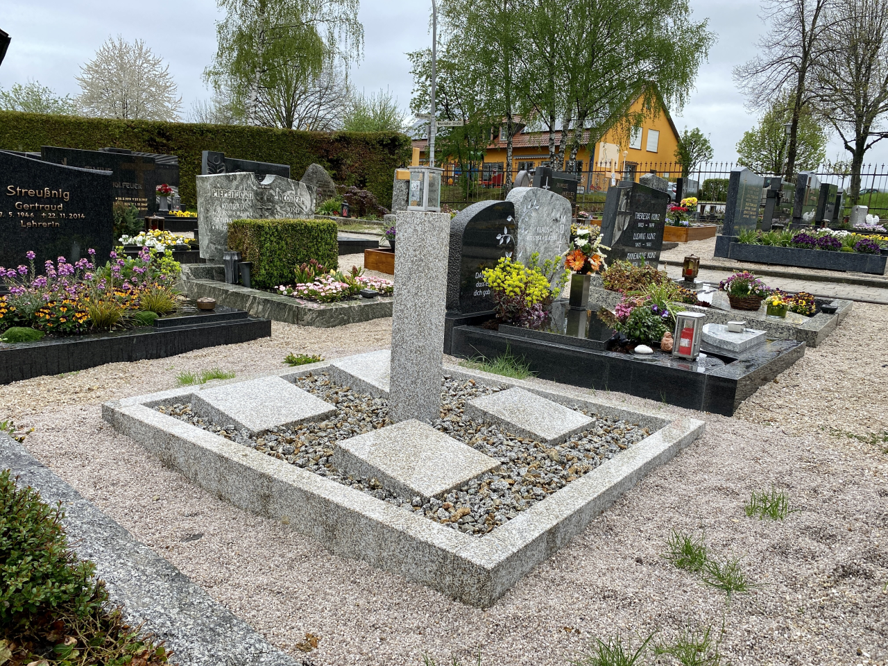Schräg oberhalb hat der Steinmetzbetrieb Rüdiger Goedeckes aus einem aufgelassenen Grab eine kleine Anlage mit vier Urnengräbern gestaltet.