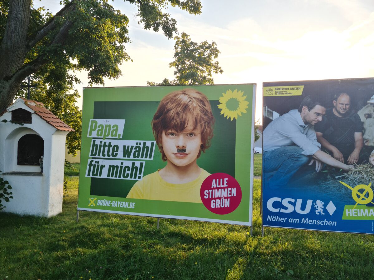 Wahlplakat der Grünen mit Hitlerbart verunstaltet