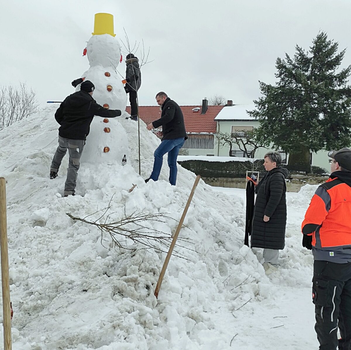 Nach dem offiziellen Teil wurde es dann winterlich. Statt Reden gab es Schneebälle – und einen stattlichen, drei Meter hohen Schneemann. Die Gemeinderatskandidaten und Mitglieder der UWG zeigten Teamgeist im Schnee und formten mitten im Dorf auf dem ehemaligen Schleicheranwesen einen Schneemann mit unverkennbar regionaler Note: Knöpfe vom Bäcker, Herzhaftes vom Metzger und – man höre und staune – Lebensfreude von der Brauerei. Mehr Schlammersdorf geht kaum. Zwischen Frost und Frohsinn wurde deutlich, wofür die UWG stehen will: Zusammenhalt, Kreativität und Spaß am Miteinander. Oder anders gesagt: bodenständige Politik, nah an den Menschen und gemeinsam gestaltet.