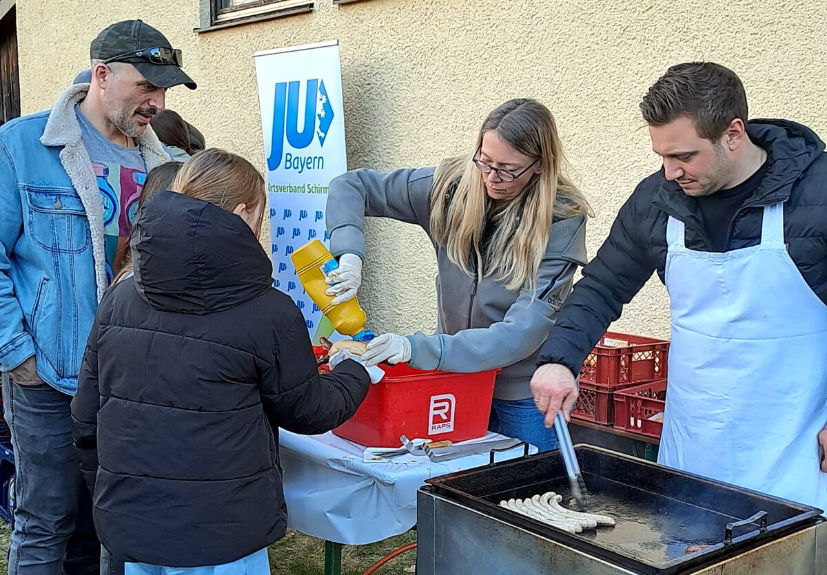 Bürgermeister Ernst Lenk ließ es sich nicht nehmen, persönlich am Grill zu stehen. Die heiße Ware aus Mantel brutzelte unter seinen Händen, während er gemeinsam mit der CSU-Ortsvorsitzenden Ariane Heigl die Gäste versorgte. Die Junge Union kümmerte sich derweil um die flüssige Versorgung mit heißen und kalten Getränken. Auch an die jüngsten Besucher war gedacht: Michaela Hahn wickelte eifrig Stockbrotteig um lange Stöcke, damit die Kinder an der Feuerstelle ihr eigenes Brot backen konnten.