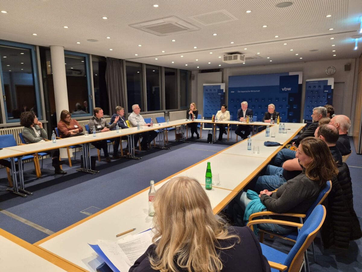 Auf dem Podium diskutierten unter anderem Stefan Ott (CSU), Birgit Fruth (SPD) und Hans-Jürgen Bumes (Bündnis 90 / Die Grünen) gemeinsam mit Wirtschaftsvertreterinnen und -vertretern im kleinen Kreis. Die Gesprächsrunde sollte deutlich machen, wie Politik und Wirtschaft kommunale Rahmenbedingungen in Amberg weiterentwickelt werden können.