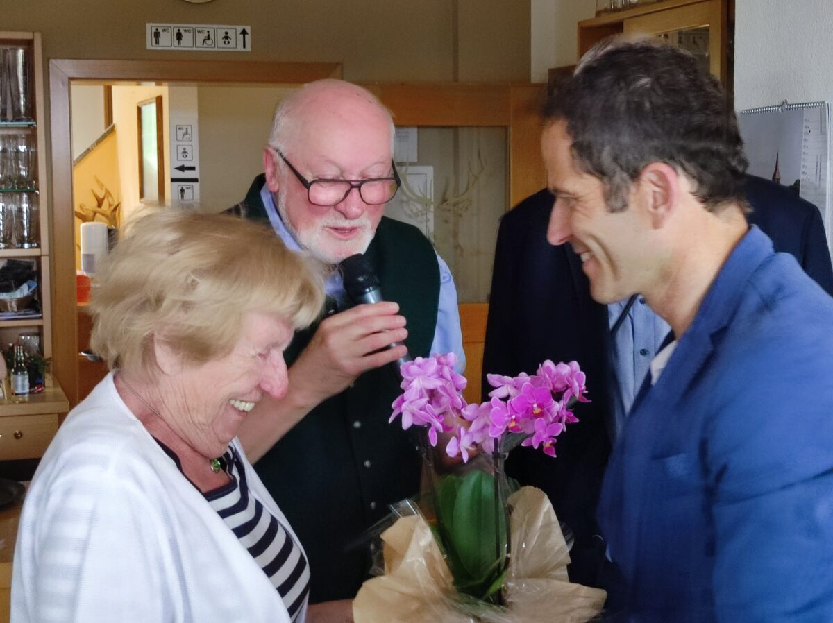 Für ihre besonderen, langjährigen Verdienste für die SEN wurde Cilly Rosner aus Flossenbürg mit einer Ehrenurkunde und einem Strauß Blumen gedankt. Cilly Rosner war viele Jahre Mitglied in der Kreisvorstandschaft und hat bei vielen Veranstaltungen aktiv mitgewirkt. Gründungsmitglied und Seniorin im Scheidler-Hof, Roswitha Scheidler, wurde ebenfalls mit einem Blumengebinde gedankt.