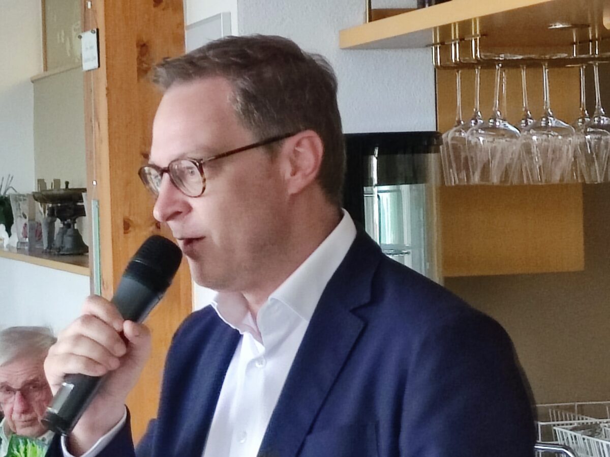 Zum eigentlichen Sommerfest musste man zwar ins Innere des Scheidler-Hofes umziehen, trotzdem herrschte dort eine entspannte Atmosphäre. Kreisvorsitzender MdL a.D. Stahl freute sich über den zahlreichen Besuch. Er kündigte noch einen Überraschungsgast aus München an.