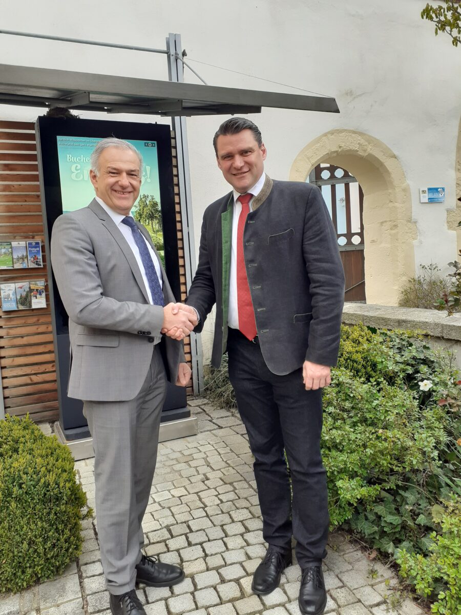 Turnusmäßig übergab daher nun Landrat Roland Grillmeier (Landkreis Tirschenreuth) den Vorsitz an Landrat Thomas Ebeling (Landkreis Schwandorf). In der Lenkungsausschuss-Sitzung im Tourismuszentrum Oberpfälzer Wald in Nabburg begrüßte Landrat Roland Grillmeier dazu neben seinem Geschäftsführungs-Nachfolger Ebeling auch Landrat Andreas Meier für den Landkreis Neustadt/WN sowie Oberbürgermeister Jens Meyer für die Stadt Weiden. Für den Tourismusverband Ostbayern nahm Antonia Gareis teil.