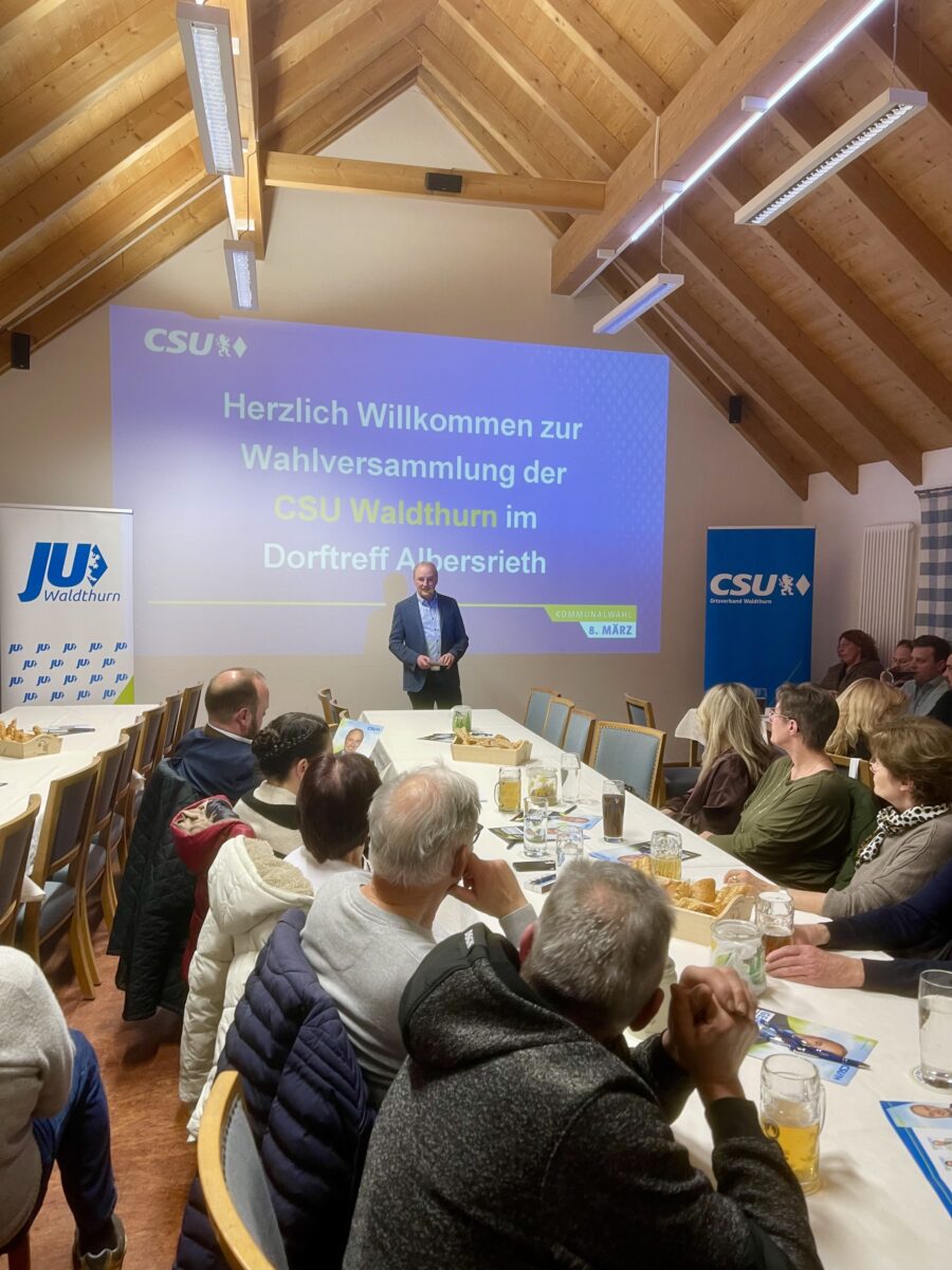 Die nächste Wahlveranstaltung der CSU Waldthurn findet am Sonntag, den 25. Januar 2025, ab 16 Uhr am Feuerwehrhaus in Oberbernrieth statt. Dort besteht die Möglichkeit, bei Bratwurst und Bier mit Bürgermeisterkandidat Georg Bocka sowie den Kandidatinnen und Kandidaten der CSU ins lockere Gespräch zu kommen. Alle Bürgerinnen und Bürger sind hierzu recht herzlich eingeladen.