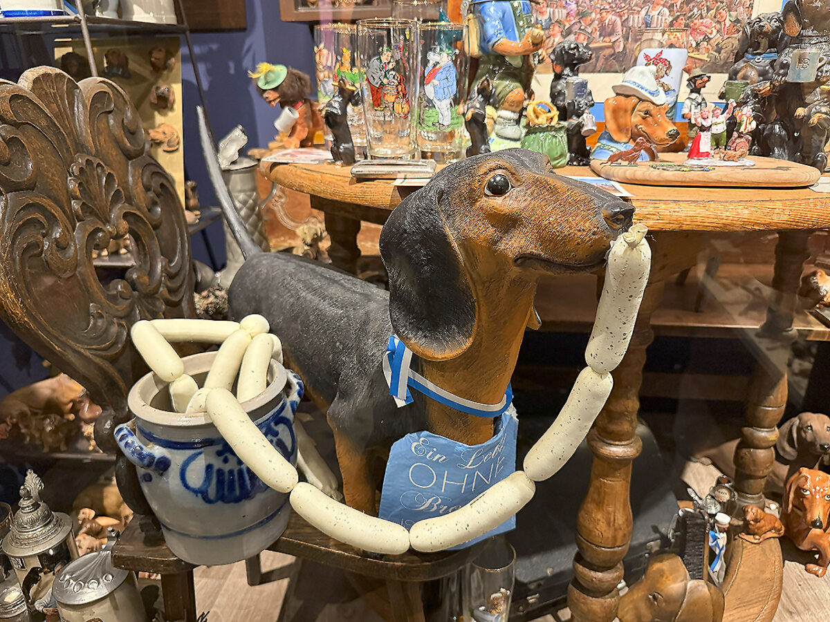 Gleich hinter dem Dom, neben dem Kölner Dom eine der bedeutendsten gotischen Kathedralen Deutschlands, Richtung Steinerne Brücke sitzt Seppi Küblbeck vor seinem Dackelmuseum in der Weißen Hahnengasse, während sein Ehemann Oliver Storz hinter der Theke rumwurstelt und „eigentlich gar nicht da“ ist. Weil Passau zu klein dachte und den beiden Erfindern des einzigartigen Dachshund-Tempels einen Freisitz verwehrte, lockt das Paar jetzt eben zusätzliche Besucherscharen in die ohnehin überlaufene Welterbe-Stadt. Eine Besuchergruppe aus den USA unterbricht kurz das Gespräch zwischen Tür und Angel: „You’re welcome“, begrüßt sie Seppi.