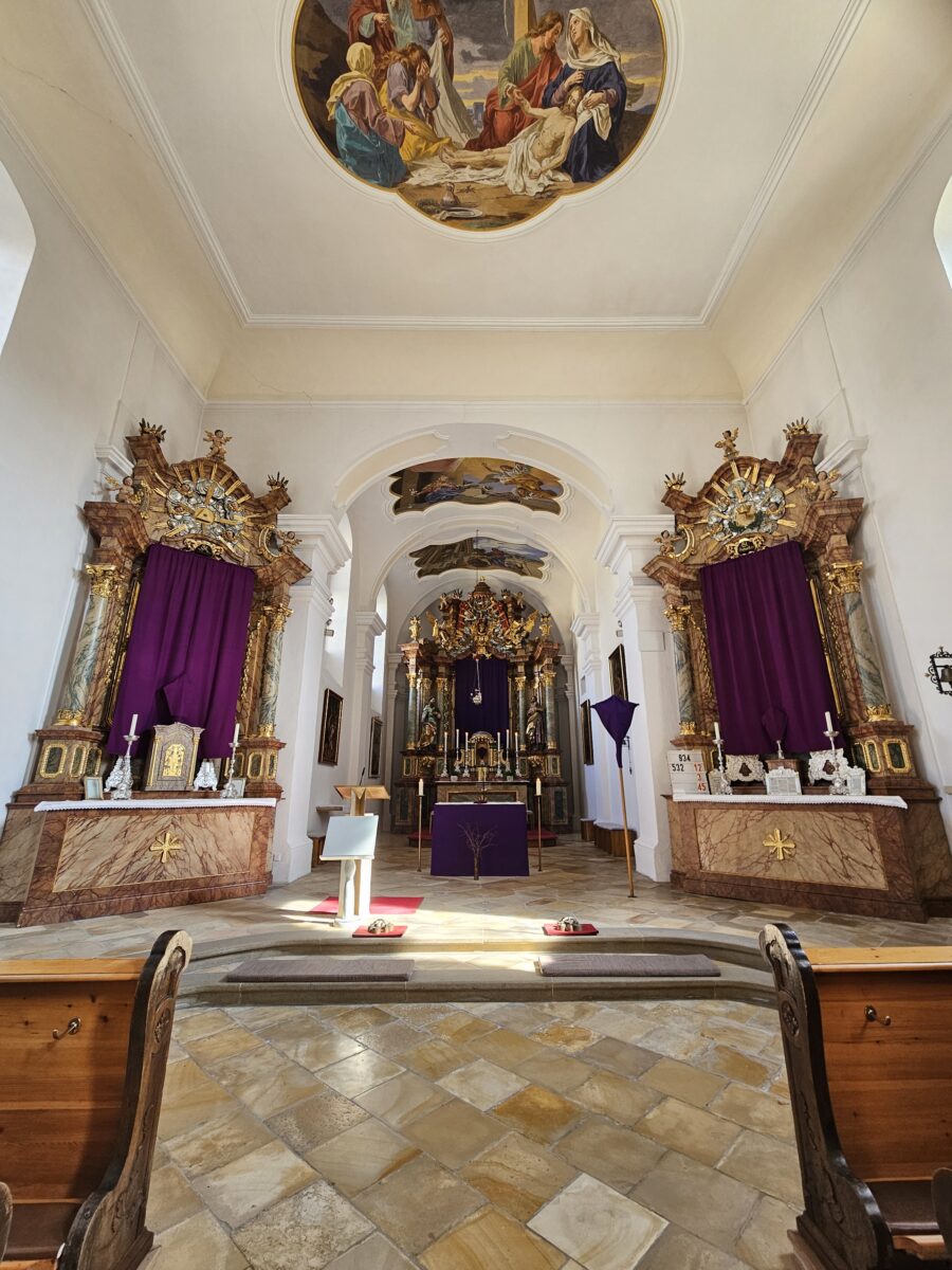 Am Passionssonntag wurden in der Pfarrkirche Mariä Himmelfahrt in Böhmischbruck traditionell die Kreuze verhängt. Pfarrer Ronald Liesaus erklärte den Gläubigen anschaulich die Bedeutung und den Hintergrund dieser Tradition.