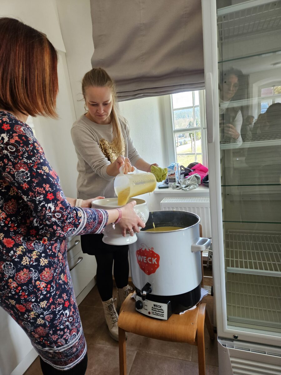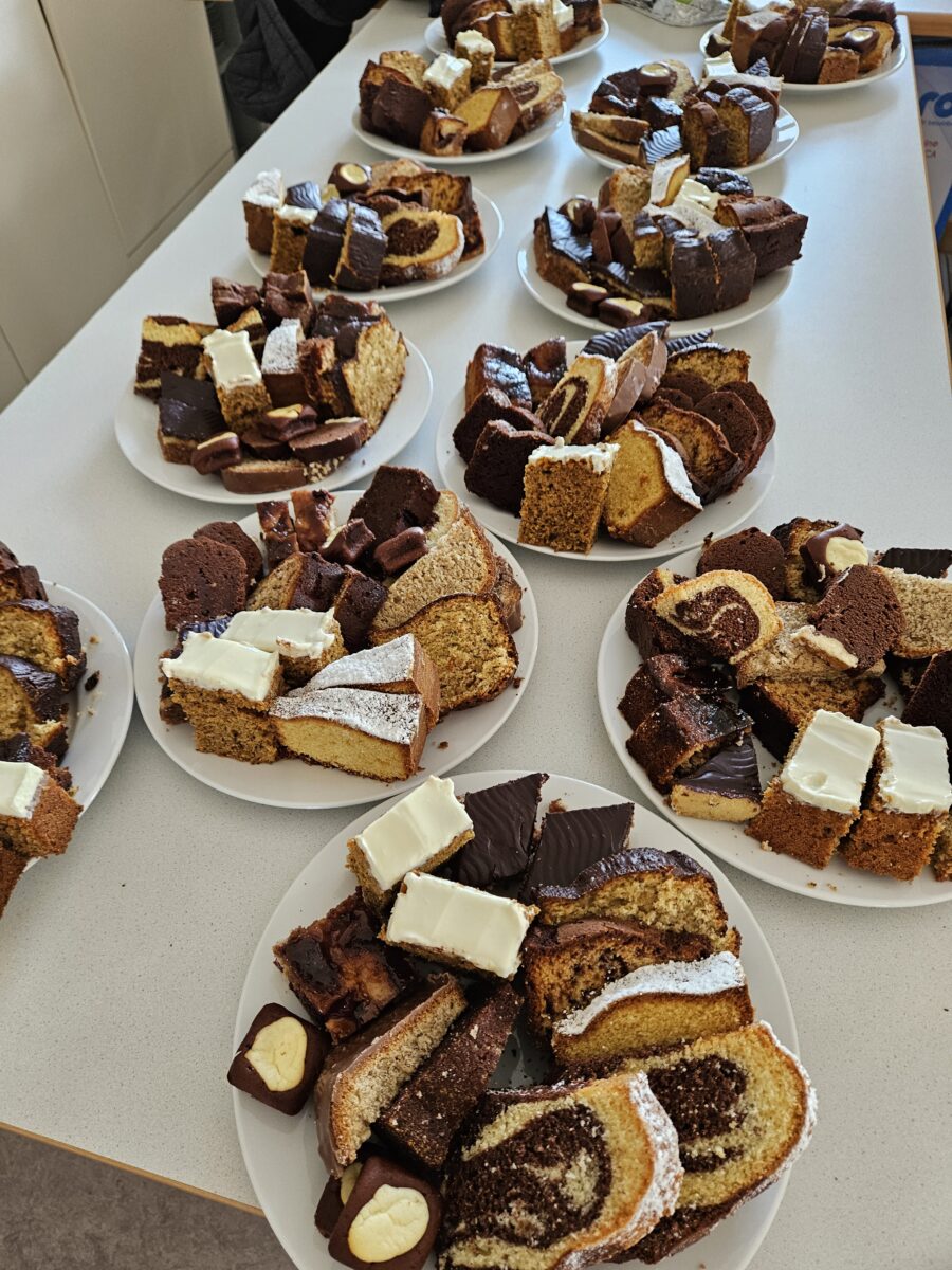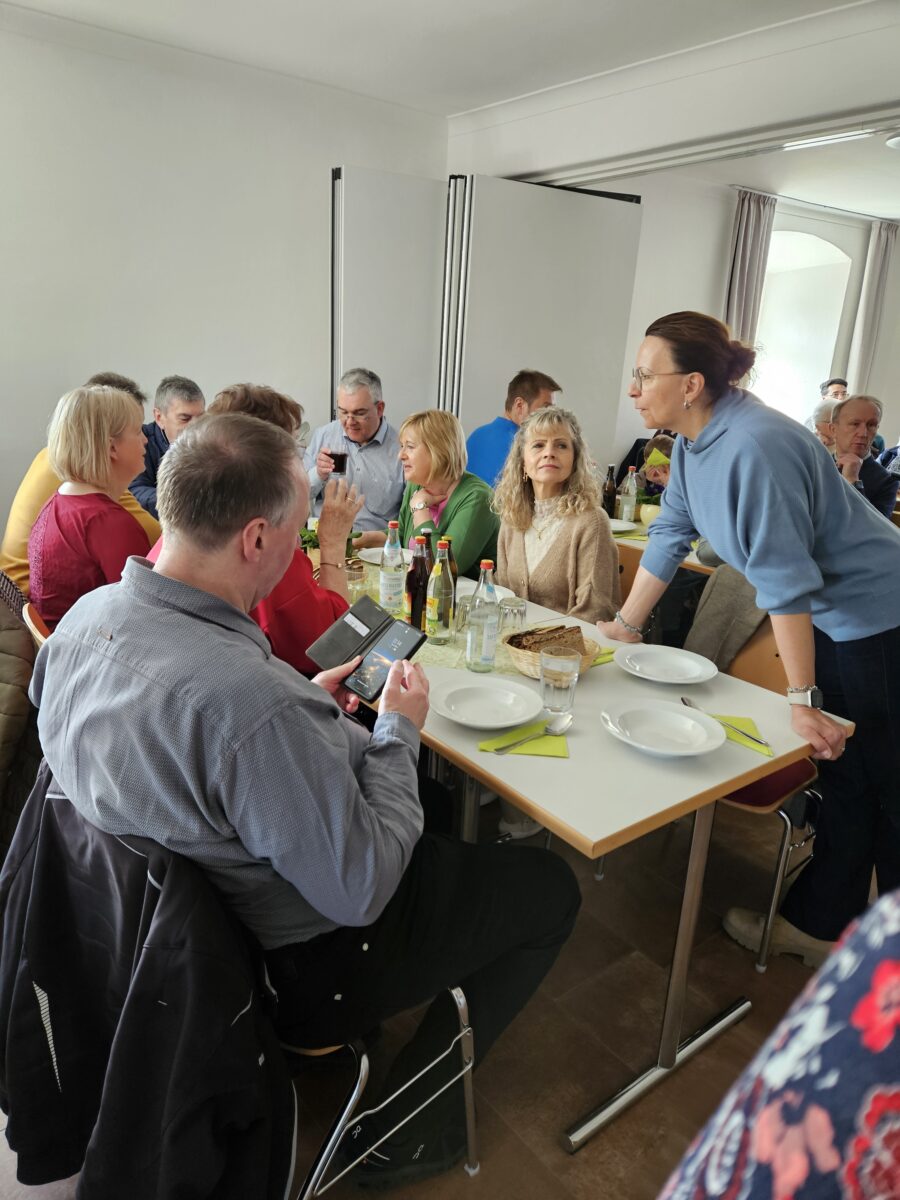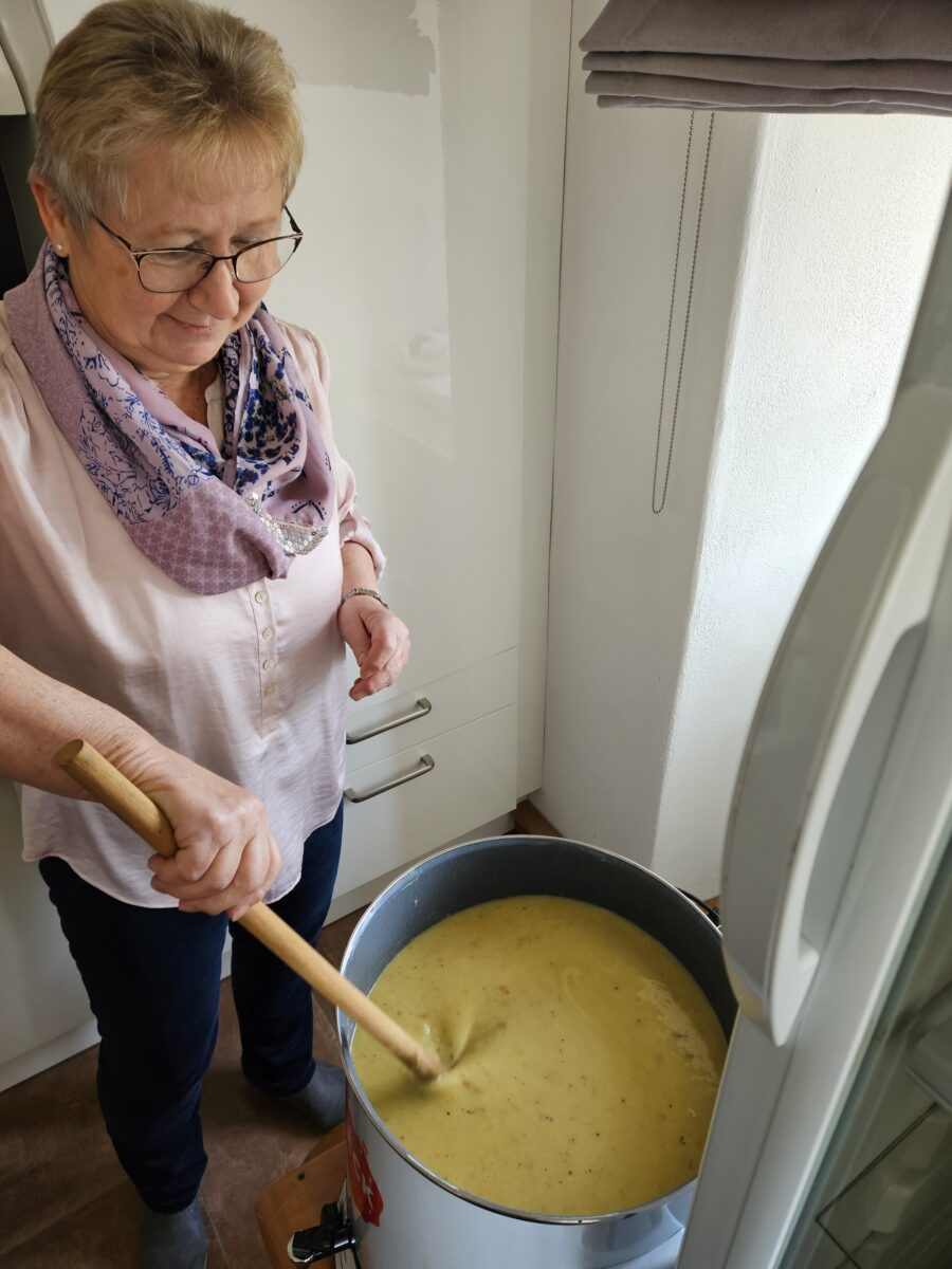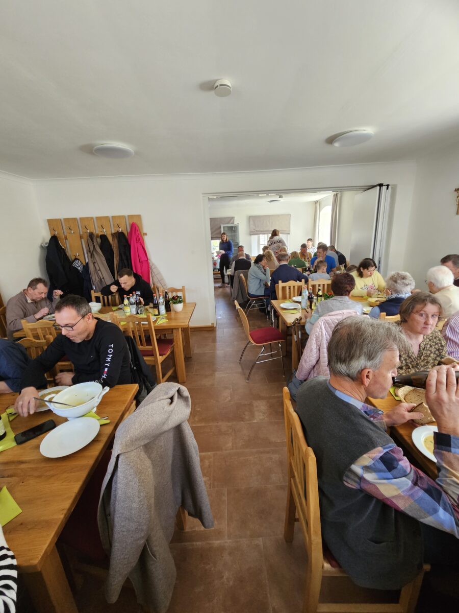 Nach dem Tischgebet wurde gemeinsam gegessen. Eine Hochrechnung zeigt, dass in den vergangenen Jahrzehnten rund 1.700 Liter Suppe gekocht und verzehrt wurden. Als Nachspeise servierte das PGR-Team eine vielfältige Auswahl an Selbstgebackenem.
