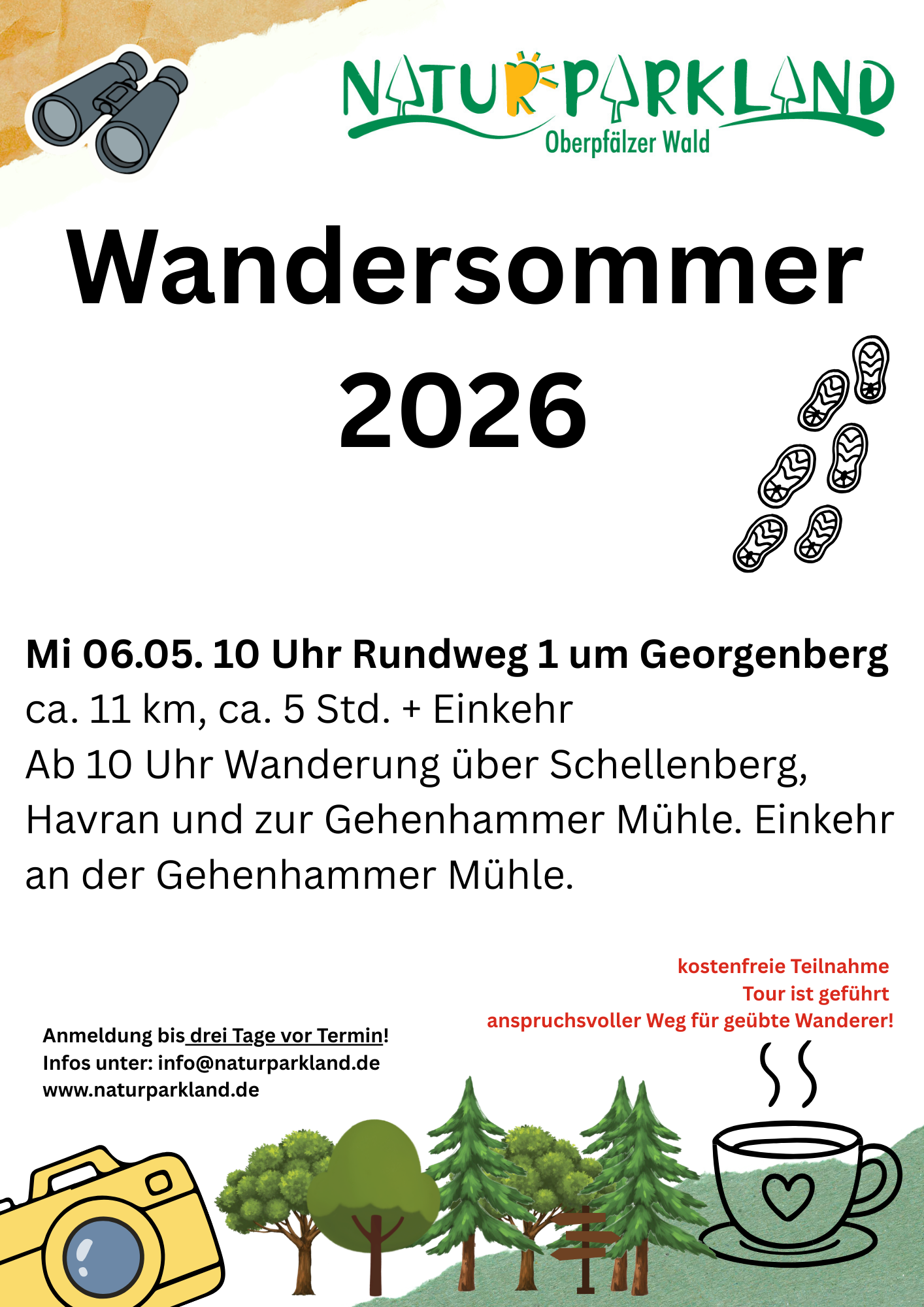 Nach einem erfolgreichen Auftakt im vergangenen Jahr setzt das Naturparkland Oberpfälzer Wald seinen Wandersommer 2026 mit vier geführten Touren fort. Die Reihe richtet sich an geübte Wandernde ebenso wie an Einsteigerinnen und Einsteiger und führt zu markanten Zielen in der Nordoberpfalz und direkt hinter der Grenze. Auf dem Programm stehen unter anderem die Räuberhöhle, der tschechische Aussichtsturm Havran sowie der Granitweg. Nach jeder Tour kehren die Gruppen gemeinsam ein, die Anmeldung ist jeweils bis drei Tage vor dem Termin möglich.