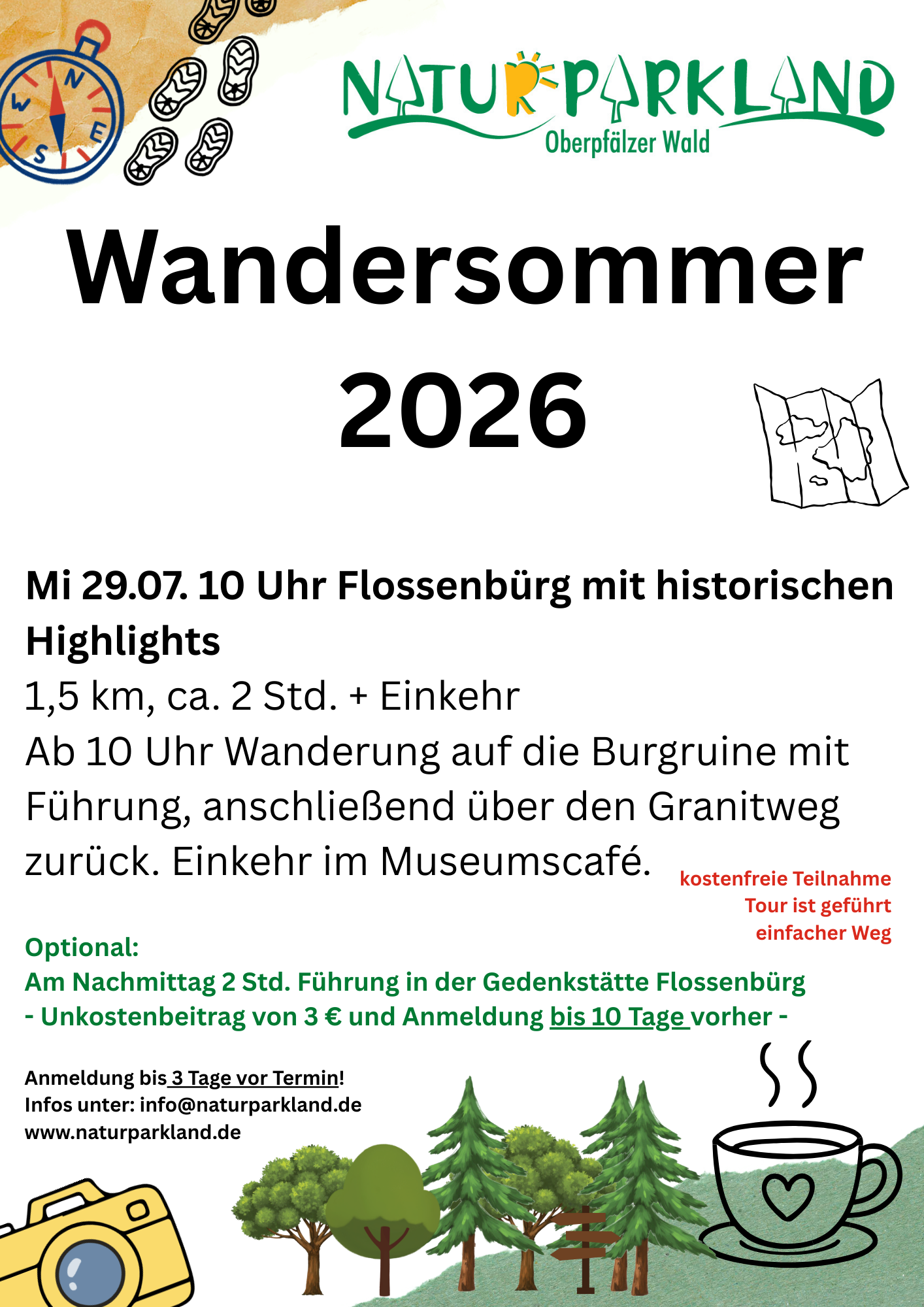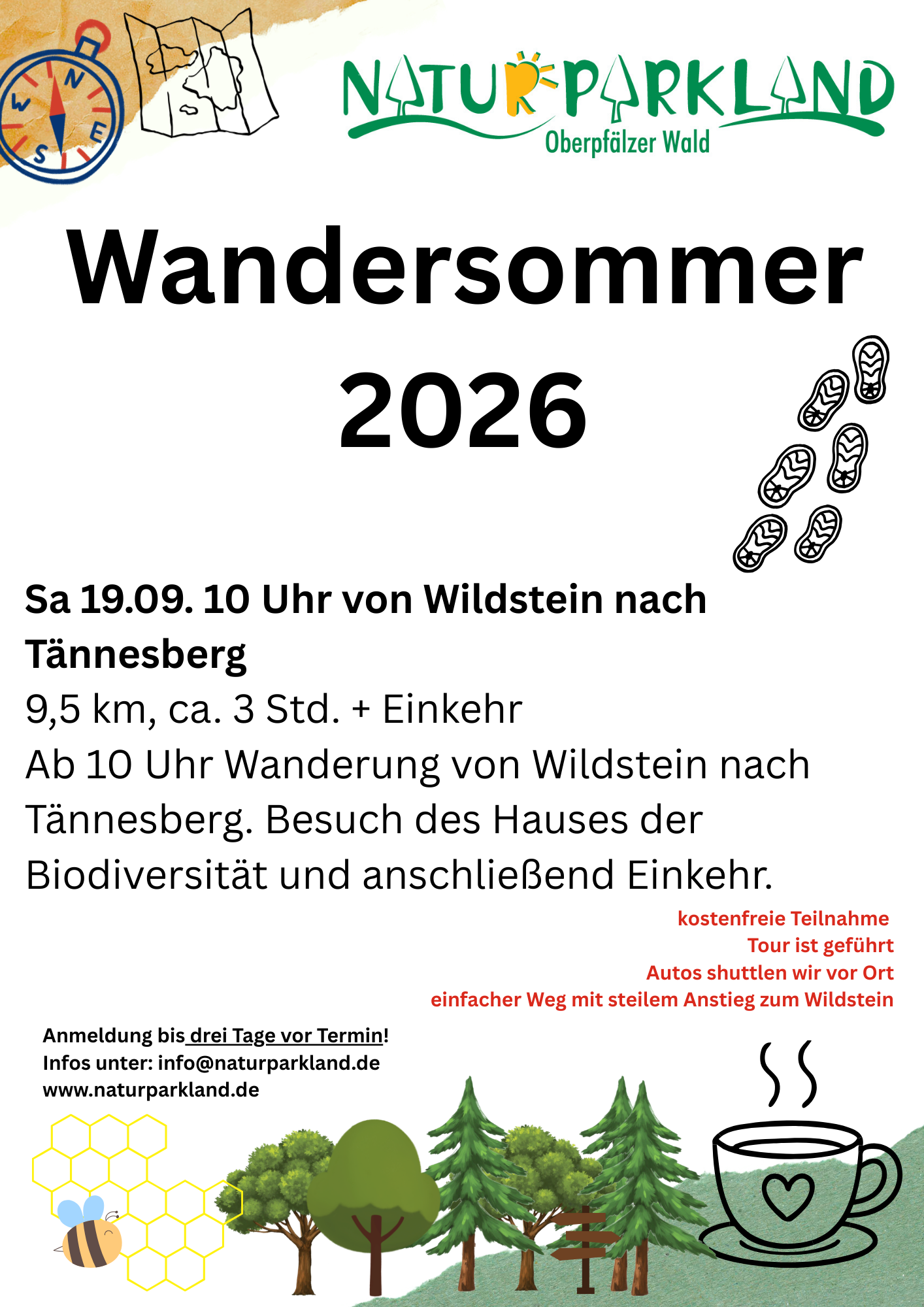 Interessierte sichern sich Plätze bis drei Tage vor dem jeweiligen Termin. Die Anmeldung läuft online, telefonisch unter 09651/9180580 oder per E-Mail an info@naturparkland.de. Als Ansprechpartnerin fungiert ILE-Managerin Ilona Hunsperger in Vohenstrauß. Die Organisatoren geben Startpunkte, Streckenlängen und Höhenmeter mit der Anmeldebestätigung aus und informieren über Anreiseoptionen. Wer die Anfahrt mit Bus und Bahn plant, achtet auf saisonale Freizeitlinien und Anschlusszeiten. Die Teilnahme empfiehlt sich für alle, die naturnah unterwegs sein und die Vielfalt des Naturparklands Oberpfälzer Wald gemeinsam entdecken möchten.