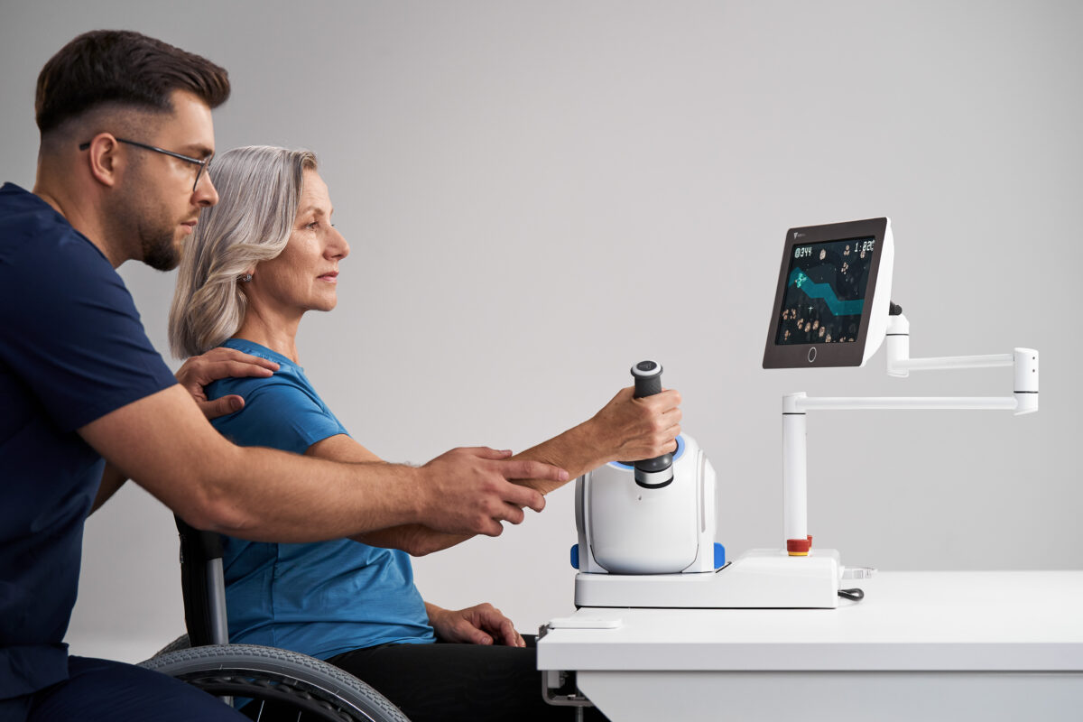 Ergotherapie Rupprecht bietet robotergestützte Behandlung an. Konkret verfügt die Praxis über die Geräte “Stella Bio” und “Meissa OT” der Firma EGZOTech.