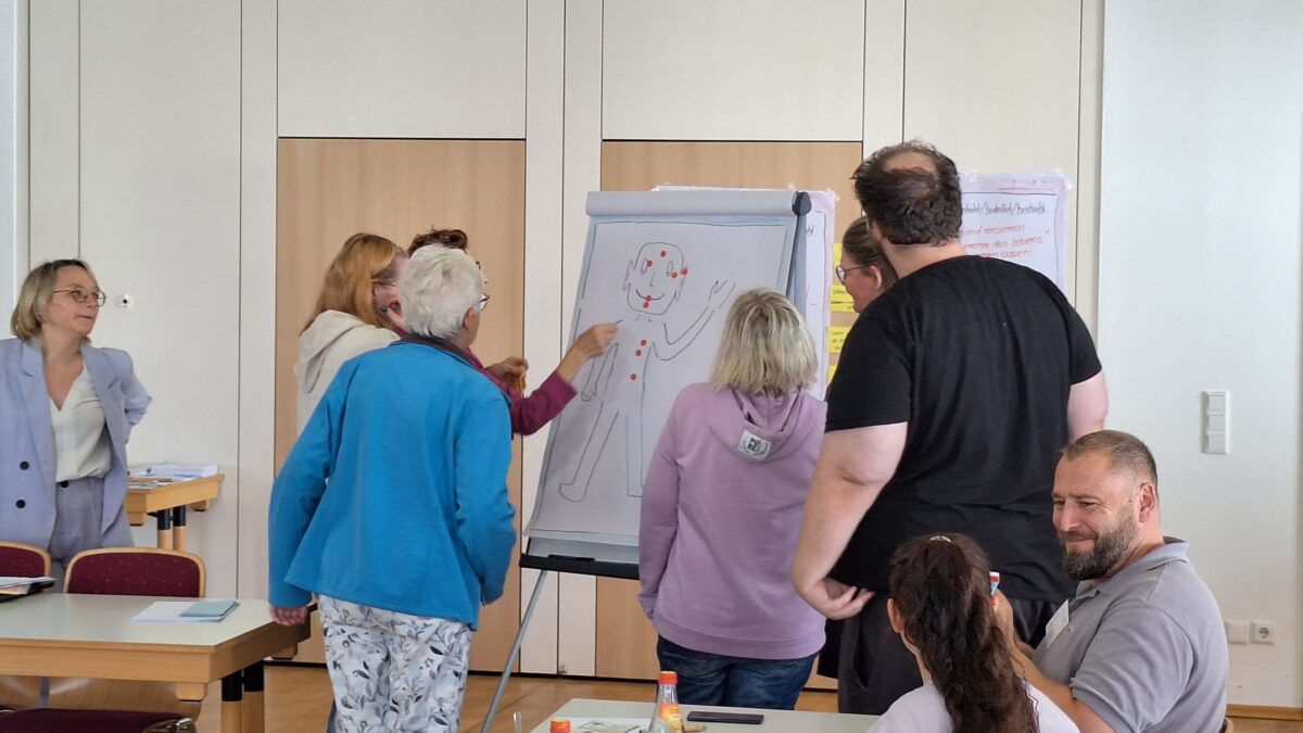 Die erfahrene Pädagogin Barbara Kießling leitete den Workshop. Sie vermittelte den Teilnehmenden Techniken, um bewusster und selbstbestimmter zu handeln. Ein besonderer Fokus lag auf der Offenlegung und Visualisierung der unterschiedlichen Rollen innerhalb der Selbsthilfegruppen. Die Methode “Die Gruppe als Körper” ermöglichte es, die Rollen der Mitglieder bildlich darzustellen. Zum Abschluss präsentierte Kießling verschiedene Ansätze zur Entscheidungsfindung in den Gruppen. Die praktischen Übungen wurden besonders positiv aufgenommen. Aus Sicht der Teilnehmenden bot der Workshop wertvolle neue Perspektiven für ihre Arbeit.